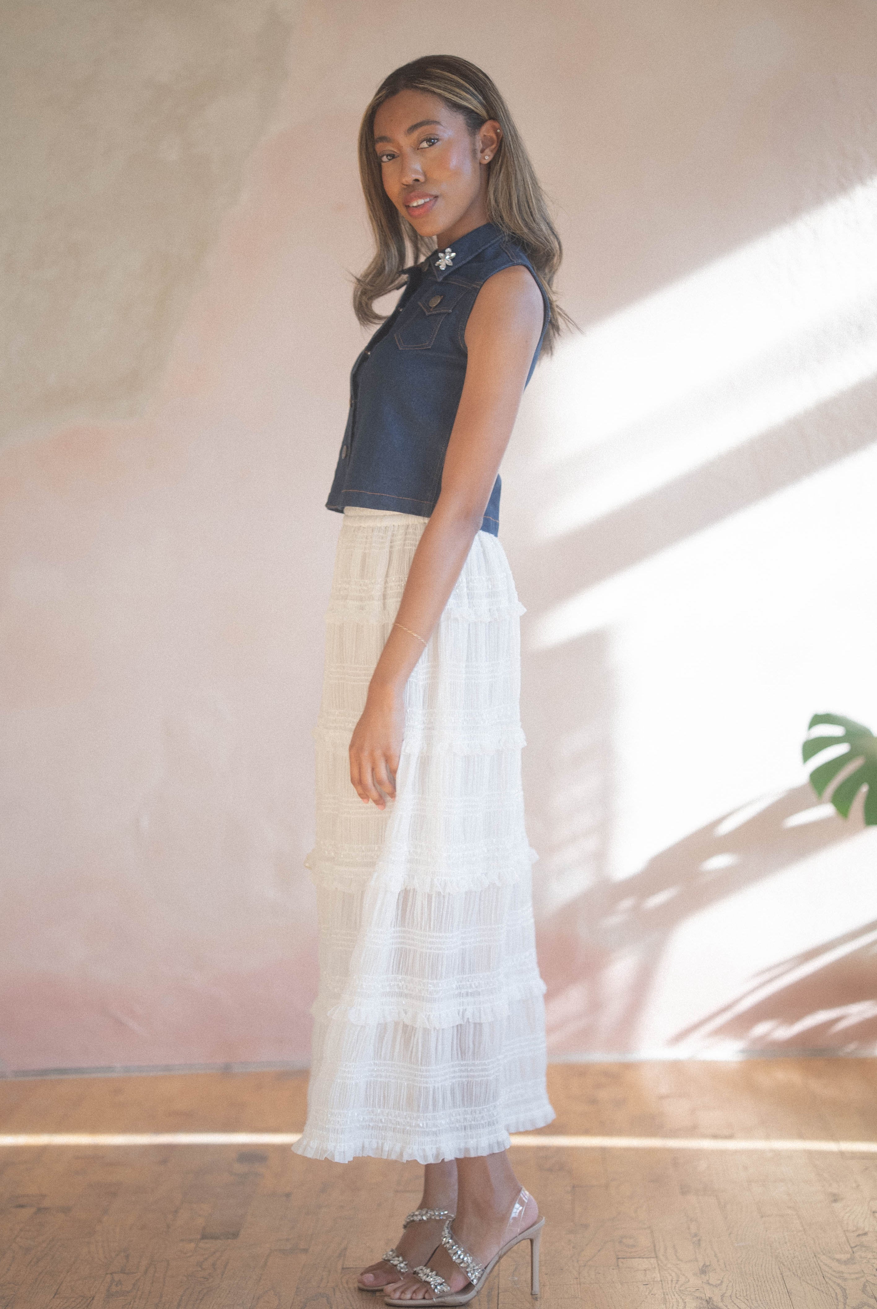 Balanced with a timeless denim and elevated detailing, and blends softness with structure in a way that feels both nostalgic and modern. Feminine shapes sway with ease, while embellishments add an extra touch of refinement. Our spring collection celebrates the beauty of spring in motion. It’s a love letter to florals, craftsmanship, and the art of thoughtful dressing.