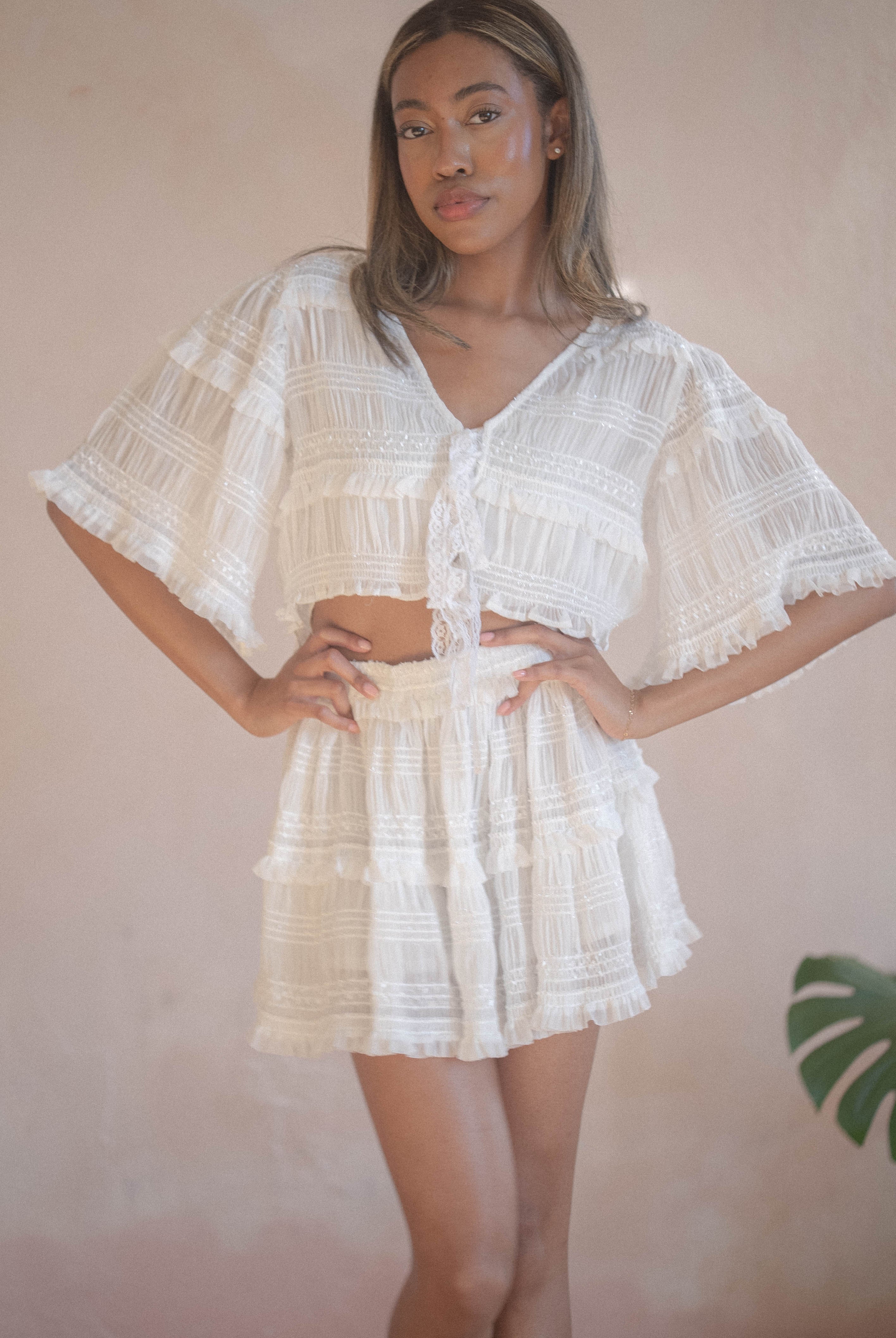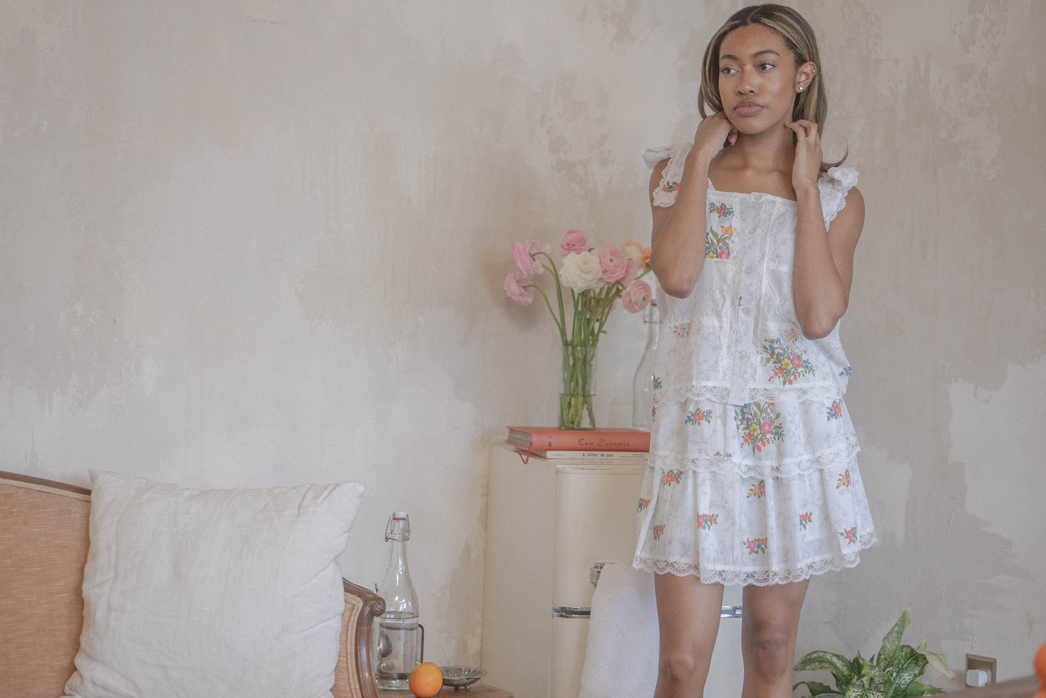 Our spring collection is inspired by the quiet romance of a European spring, where bloomed florals spill over balconies and petals sweep across courtyards in the softest breeze. The collection captures that sense of movement, as if florals are caught mid-dance. Airy chiffons drift effortlessly, delicate laces feel like heirloom keepsakes, and our Floral Waltz print brings a sense of rhythm and poetry to every silhouette. Each piece feels light and feminine.