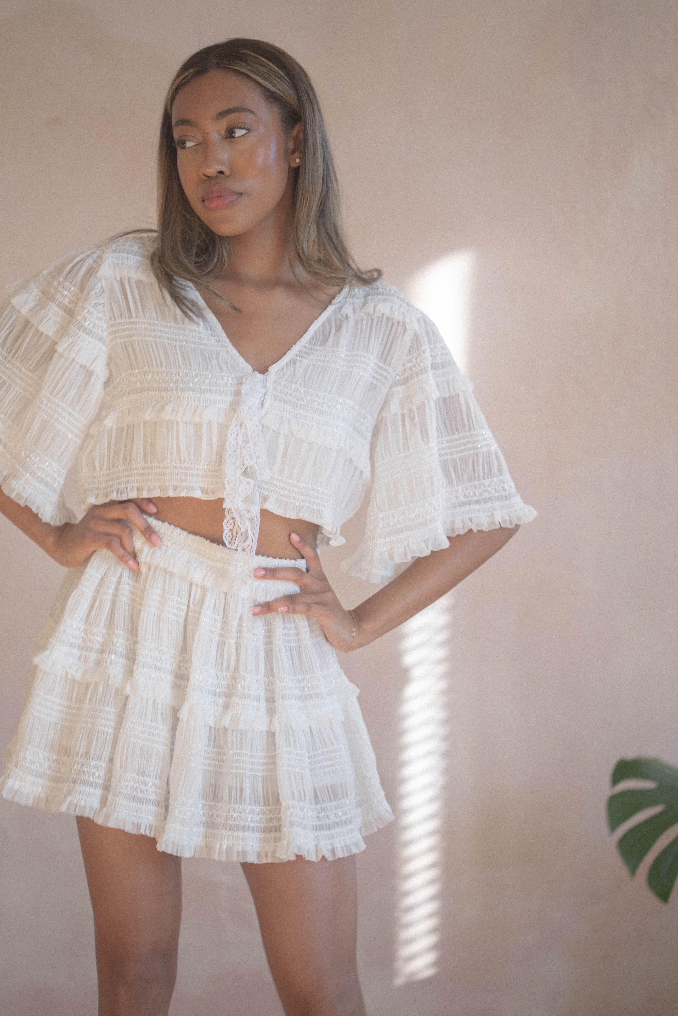 PRE-ORDER: SYLVIE LACE MINI SKIRT | CELESTE