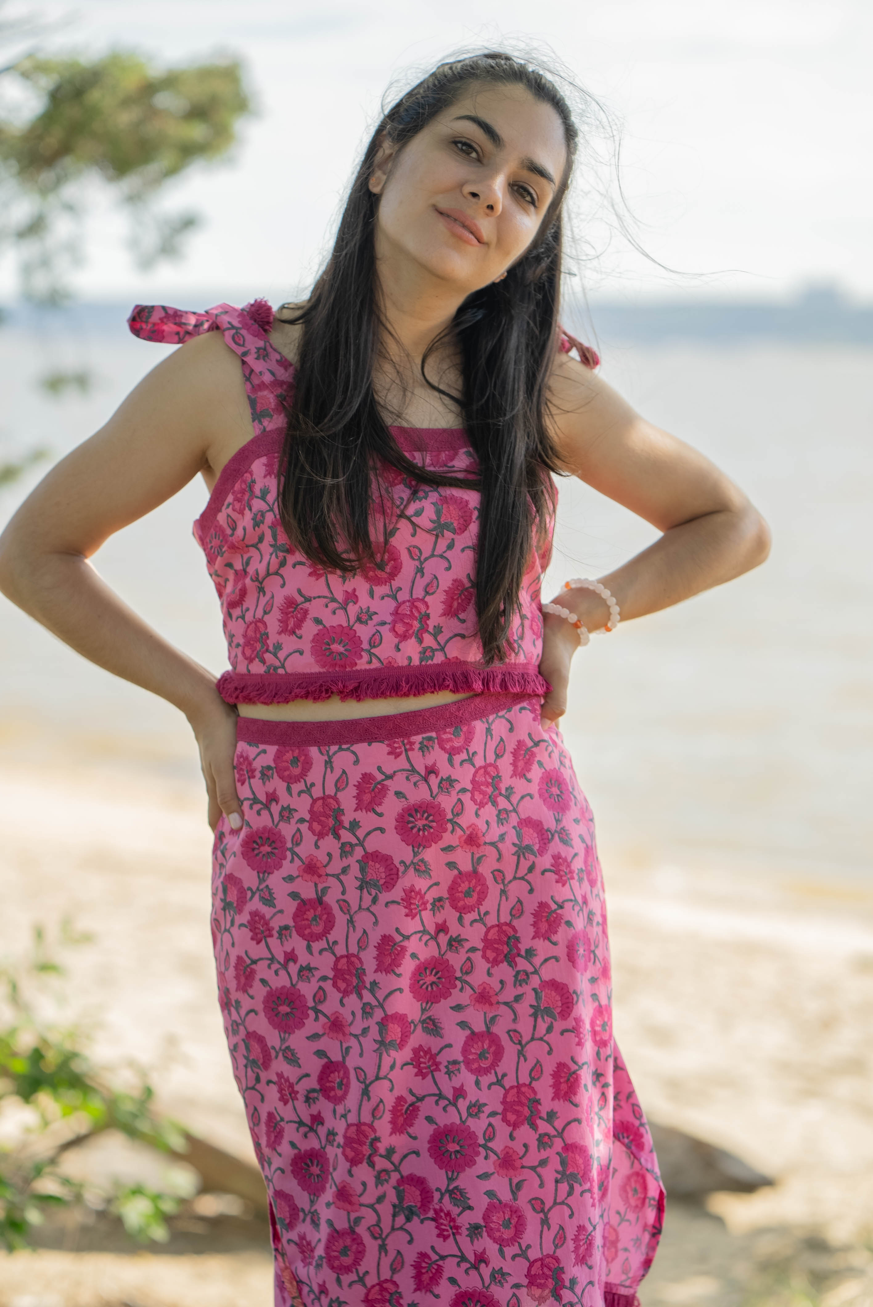 The standout details include fringe detailing that adds a hint of movement and fun to your look. Choose between two captivating variations – the Pink Poppy Embroidery, exuding vibrant femininity, or the Douro Hand Block, celebrating artisanal craftsmanship with a touch of traditional charm.
