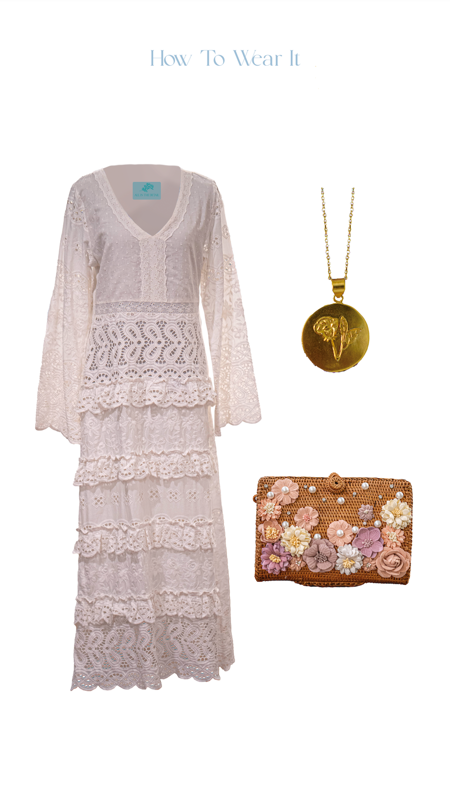The Audrey Dress is the epitome of boho-chic femininity, now available in our stunning Flor Eyelet fabric. This tiered maxi dress features delicate lace details that add a touch of vintage charm and romance. Fully lined for a smooth fit, the Audrey Dress drapes beautifully, offering effortless movement and elegance. Perfect for sun-filled days and evening soirées alike, this feminine, flowy dress brings a timeless, free-spirited vibe to your wardrobe—where classic meets contemporary in the most enchanting way.