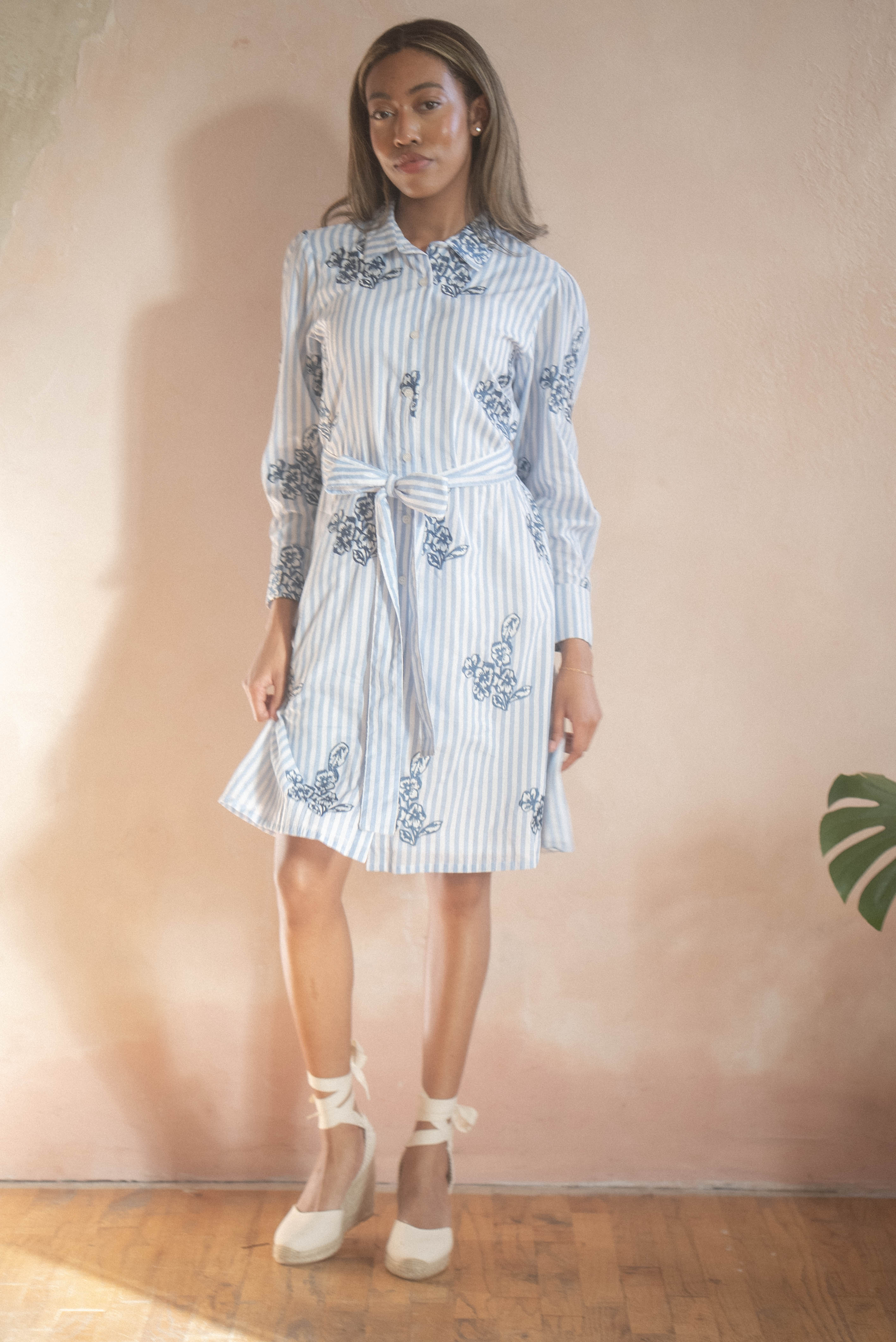 PREORDER: NATALIE KNEE LENGTH SHIRT DRESS | JARDINETTE EMBROIDERY