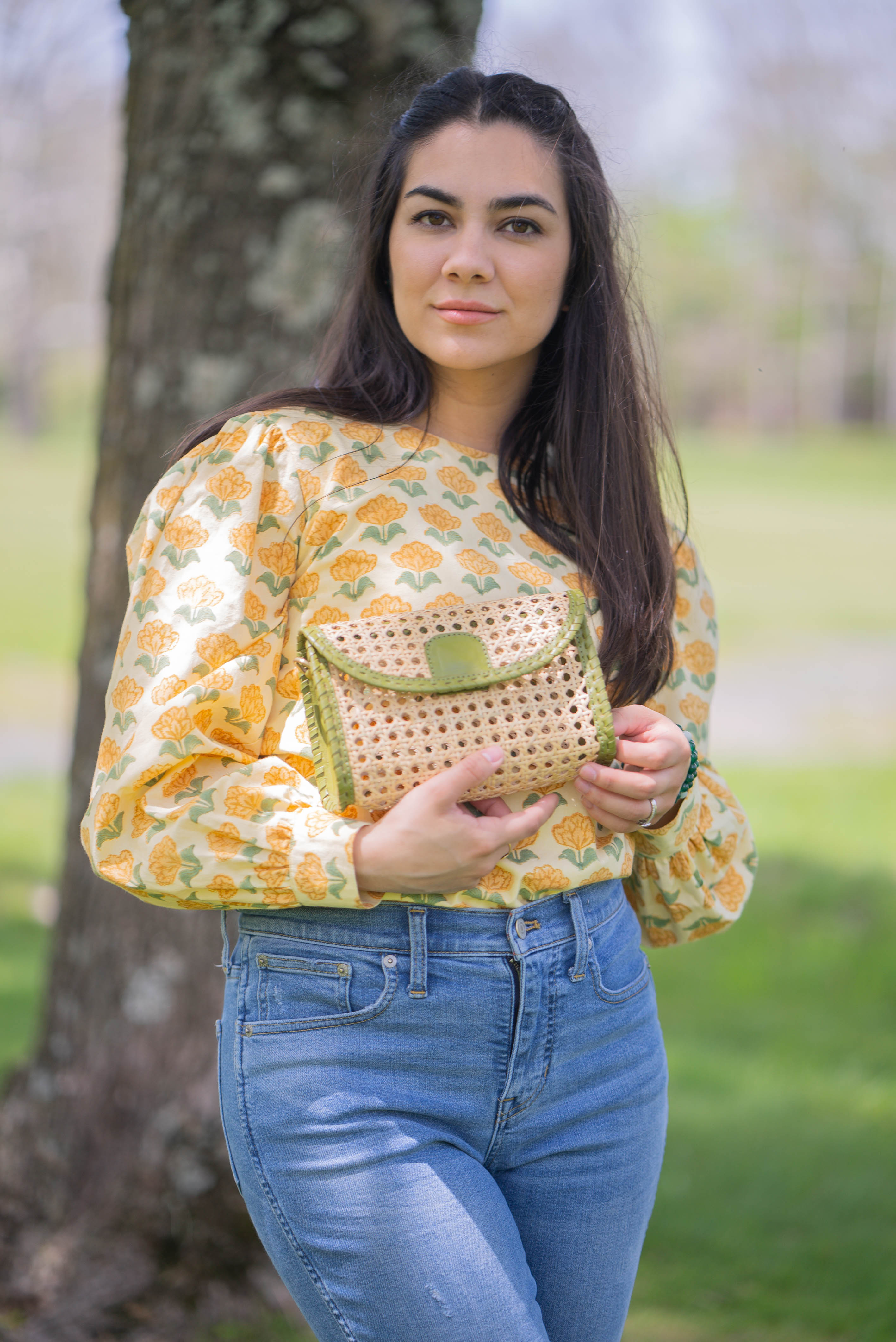 Our Solange rattan and leather clutch is such a classic fun way to complete any spring and summer look. Completed with a leather trim and leather strap. Our rattan handbags are all handmade.