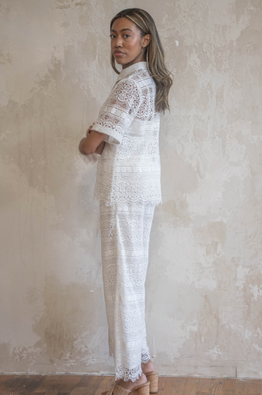PRE-ORDER: KATE SHORT SLEEVE BUTTON DOWN BLOUSE | FLORAL LACE