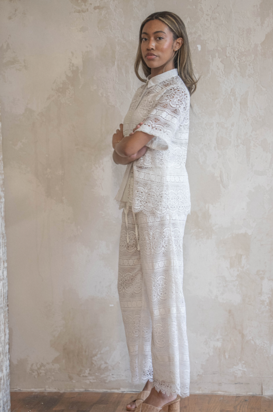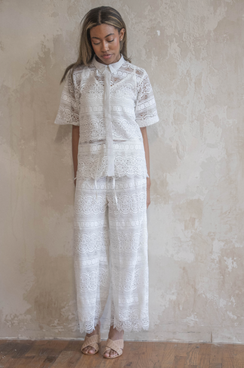 PRE-ORDER: MADISON DRAWSTRING WAIST PANT | FLORAL LACE