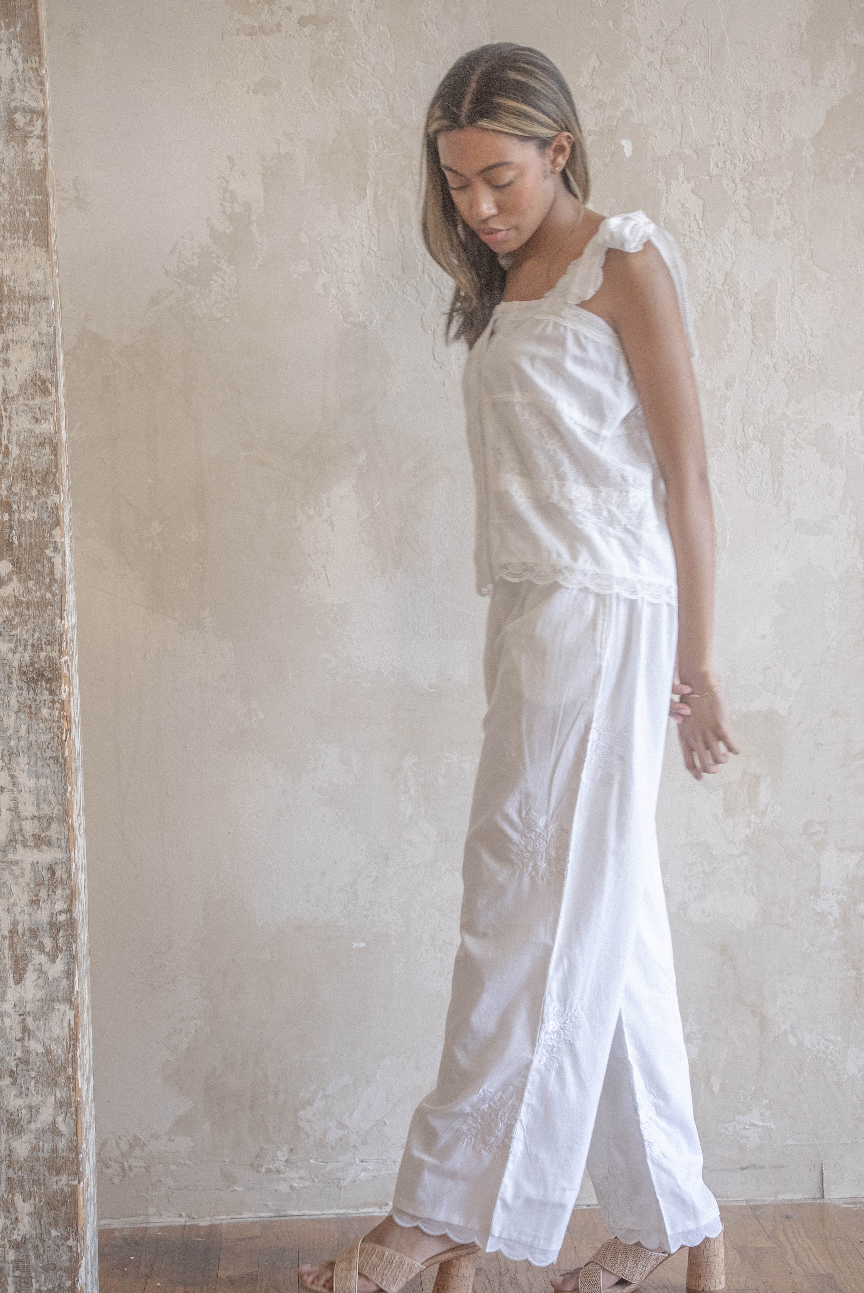 PRE-ORDER: MADISON DRAWSTRING WAIST PANT | SUMMER BLOOMS EMBROIDERY