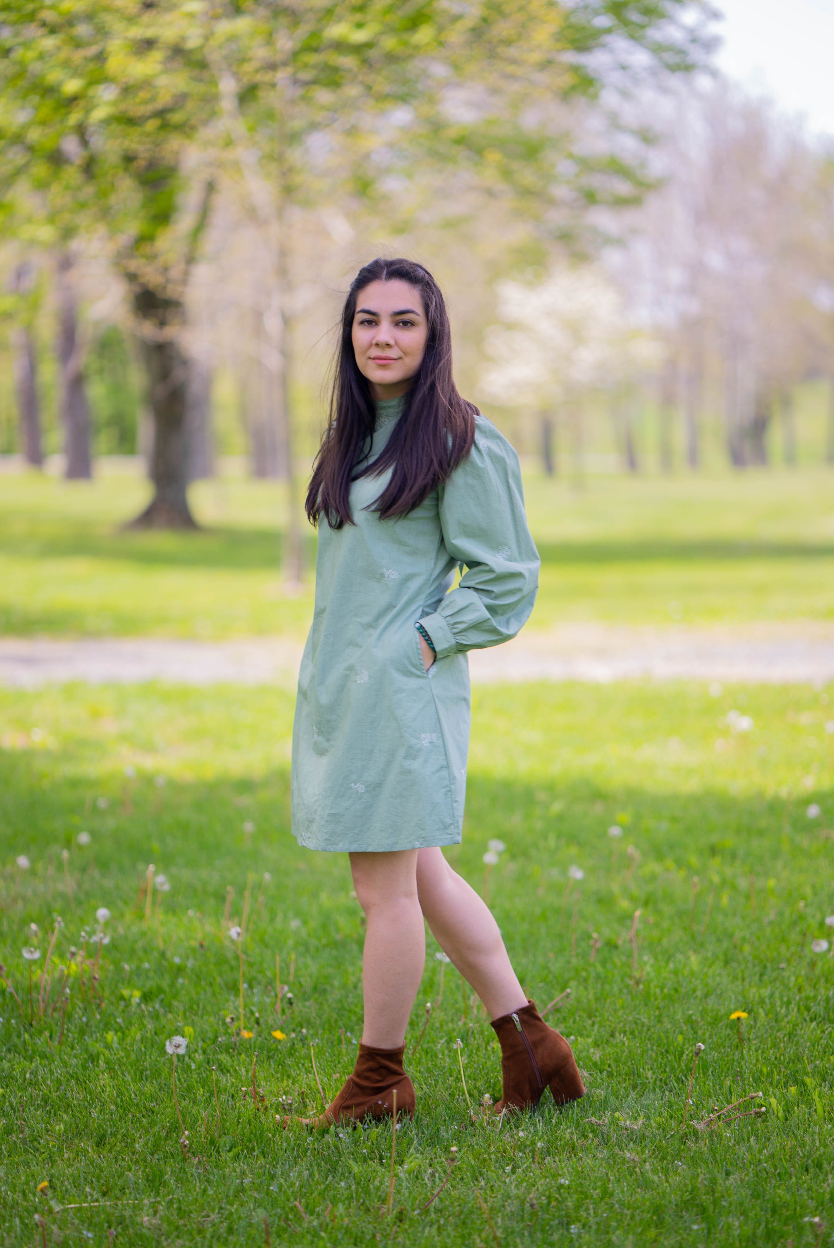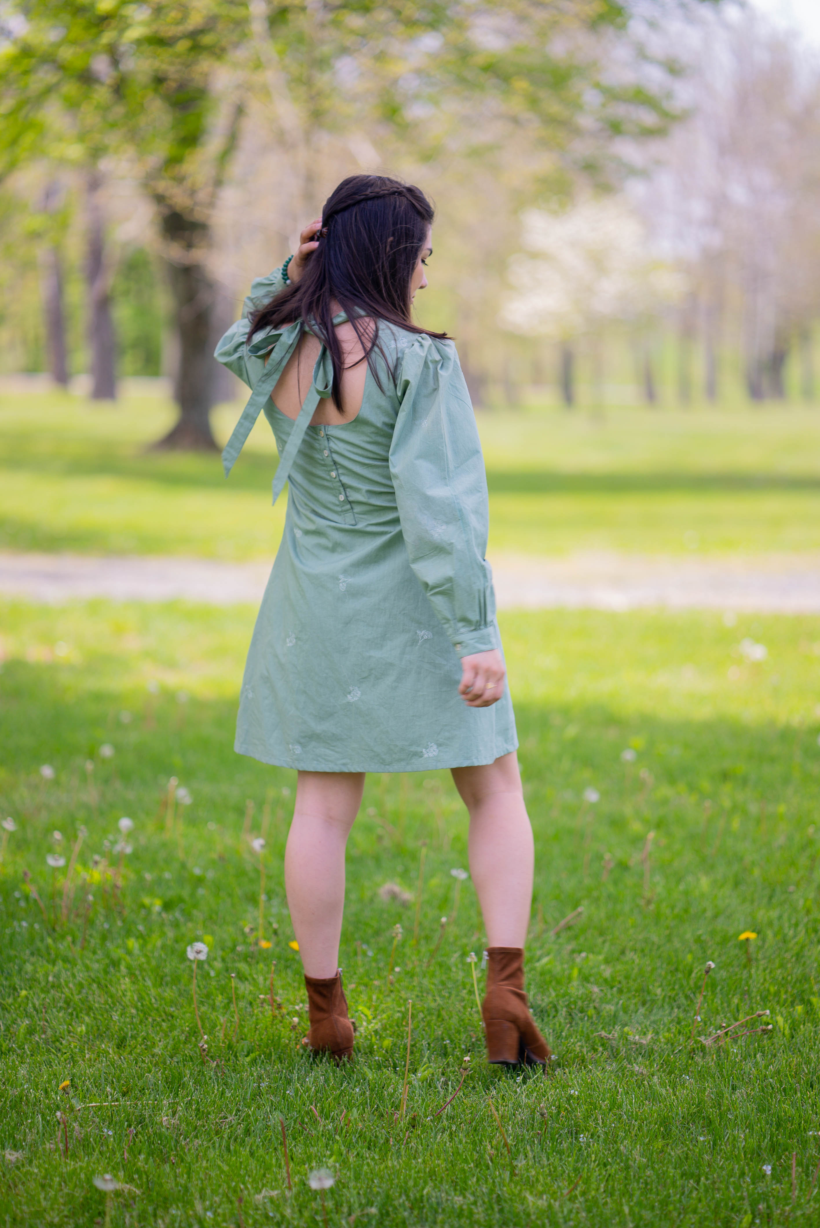 LILLY KNEE LENGTH TIE BACK DRESS | SAGE POPPY EMBROIDERY