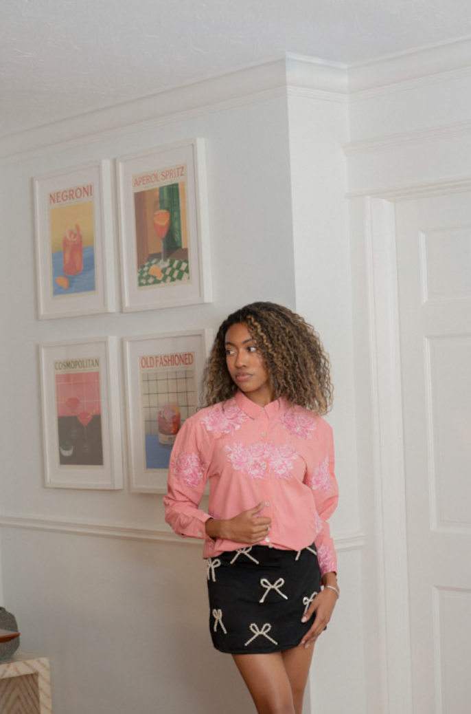 PRE-ORDER: ANNALISE BOW EMBELLISHED TWEED SKIRT | PINK MEMOIR
