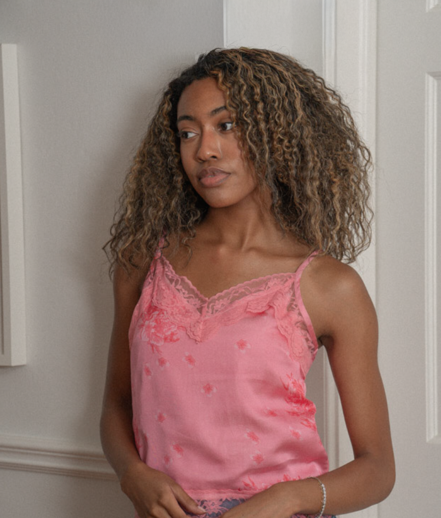 PRE-ORDER: SELMA SATIN AND LACE CAMI TOP | PINK BLUSHING GARDEN