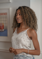 PRE-ORDER: SELMA SATIN AND LACE CAMI TOP | WHITE BLUSHING GARDEN