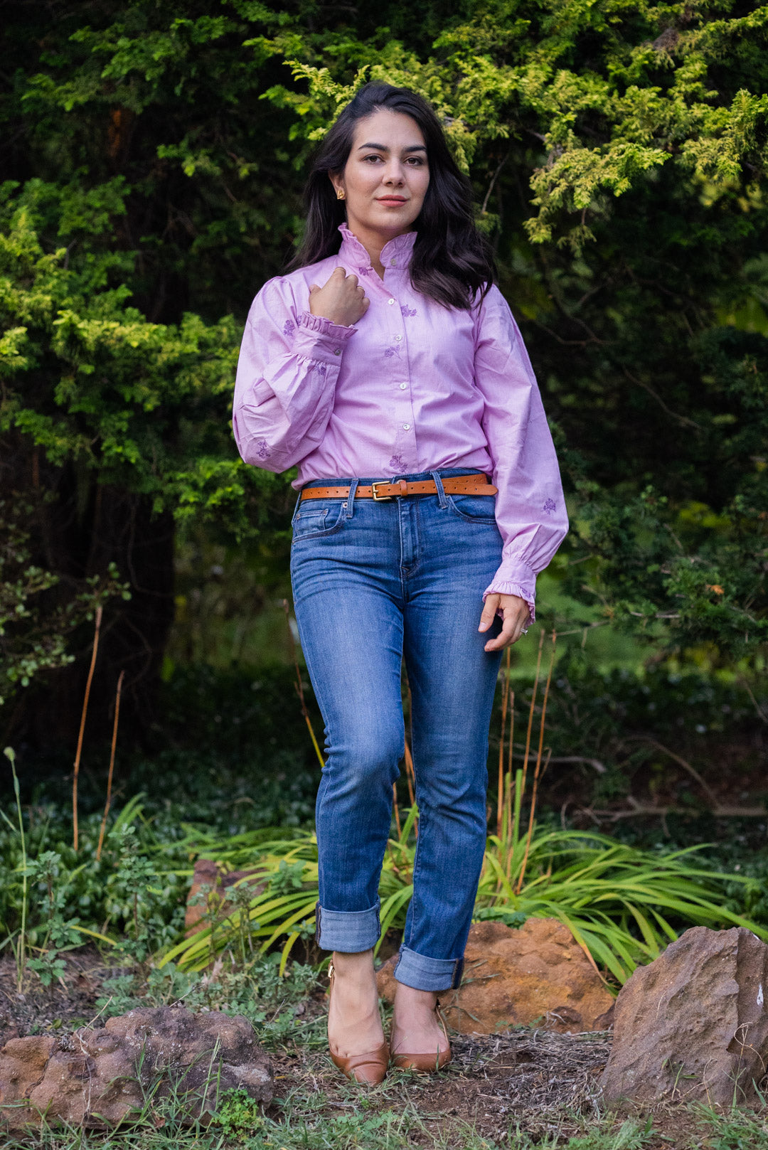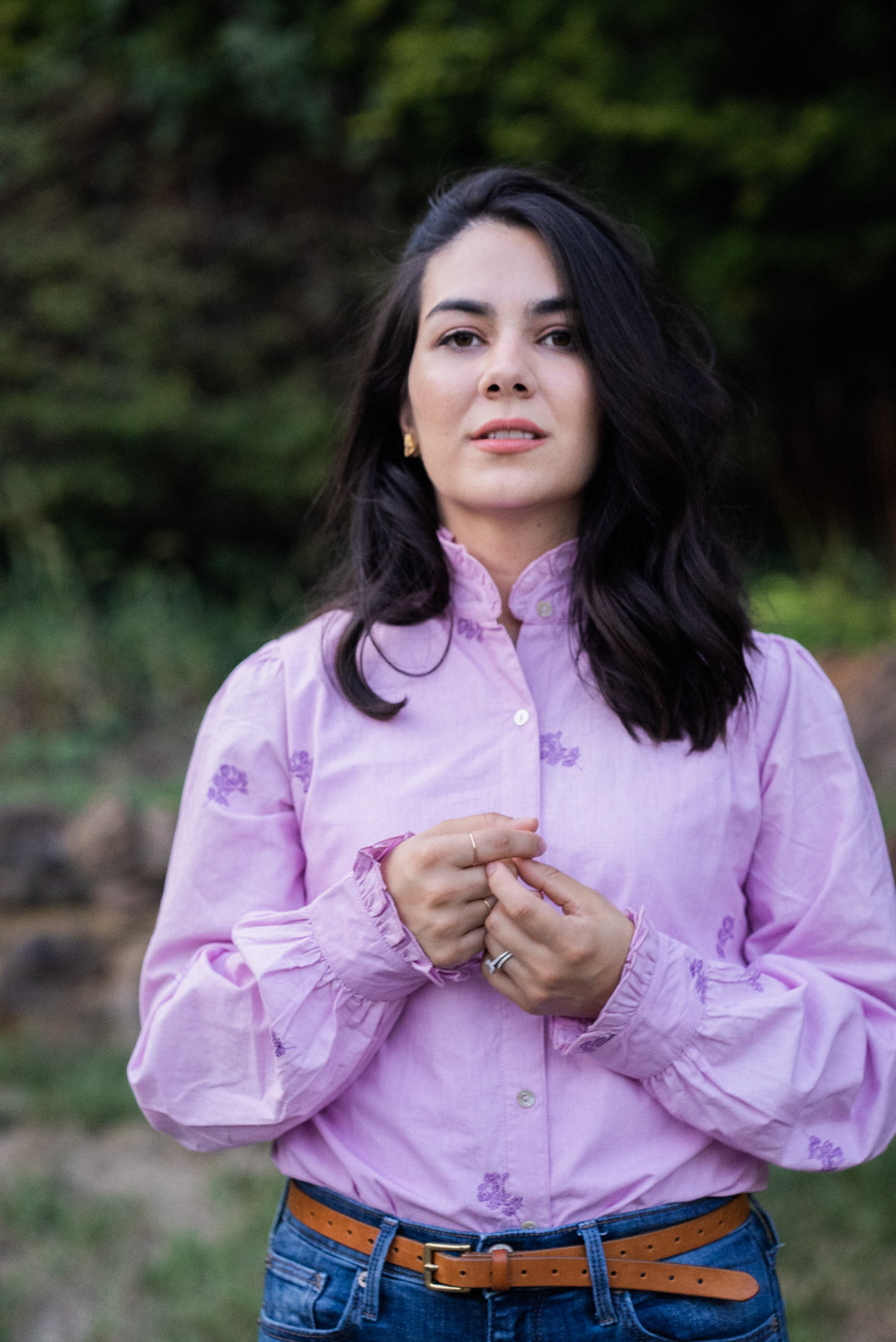 SAMPLE SALE - TERESA BLOUSE WITH RUFFLES | PURPLE POPPY