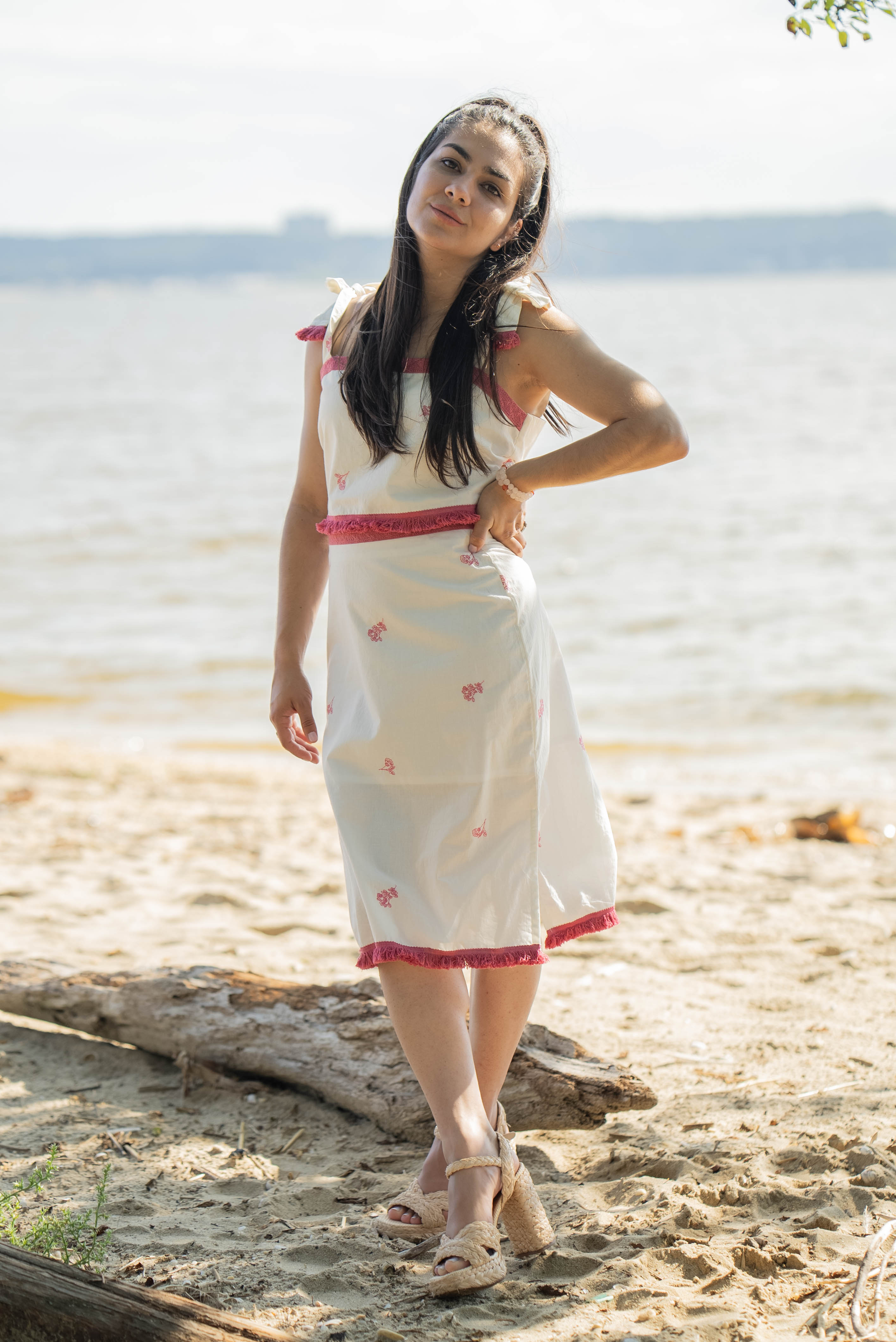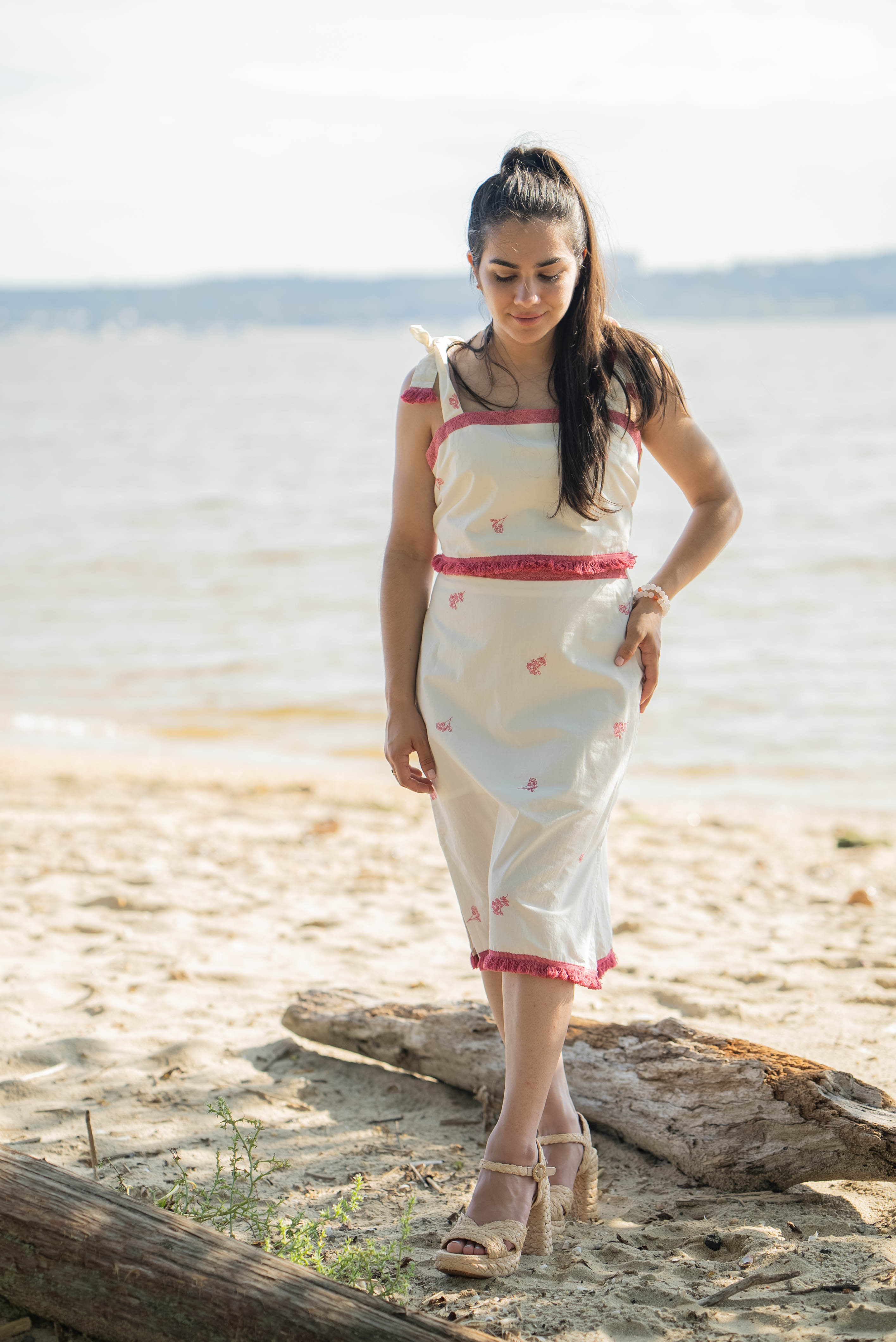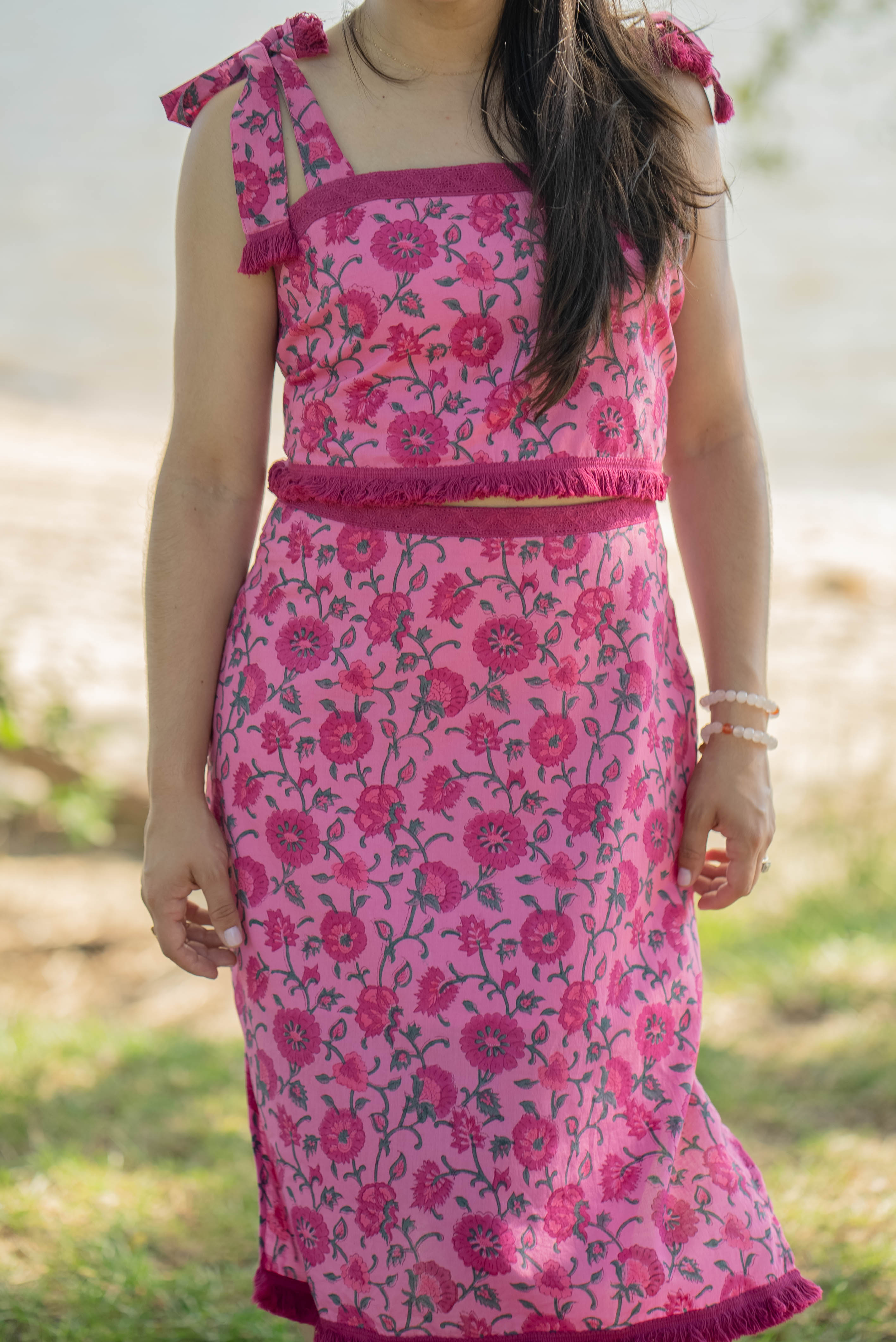 VALERIE TIE STRAP FRINGE CROP TOP | PINK POPPY EMBROIDERY