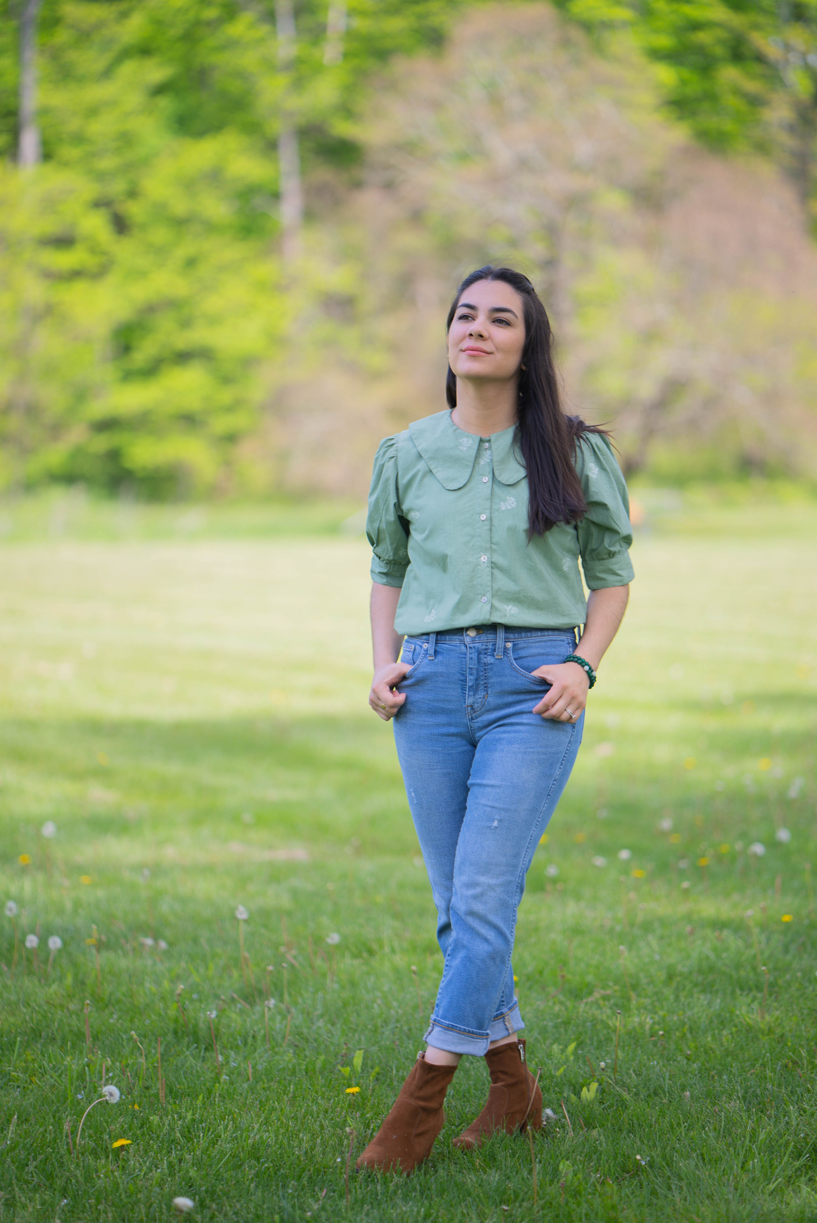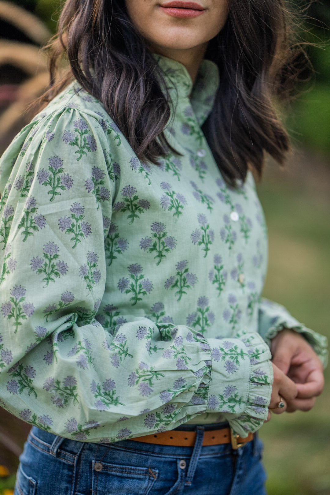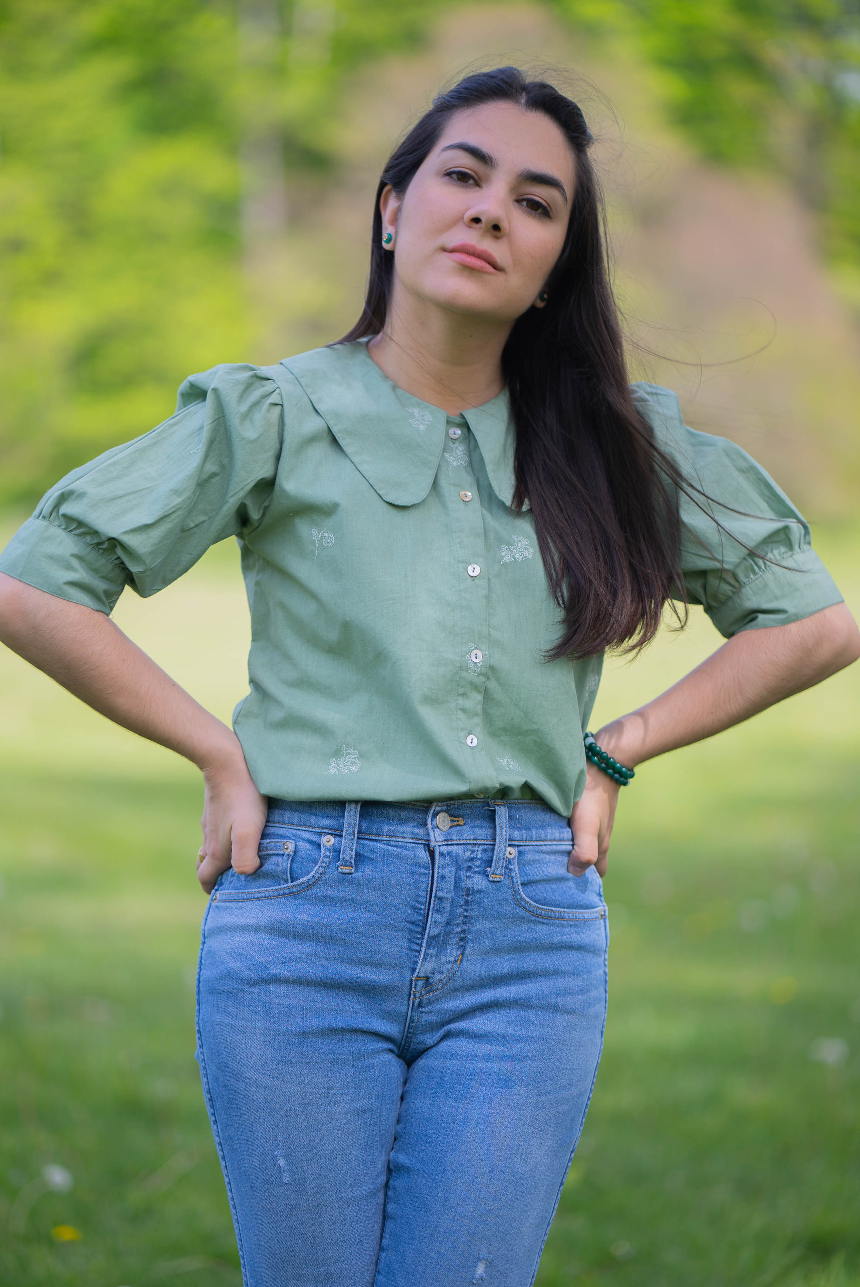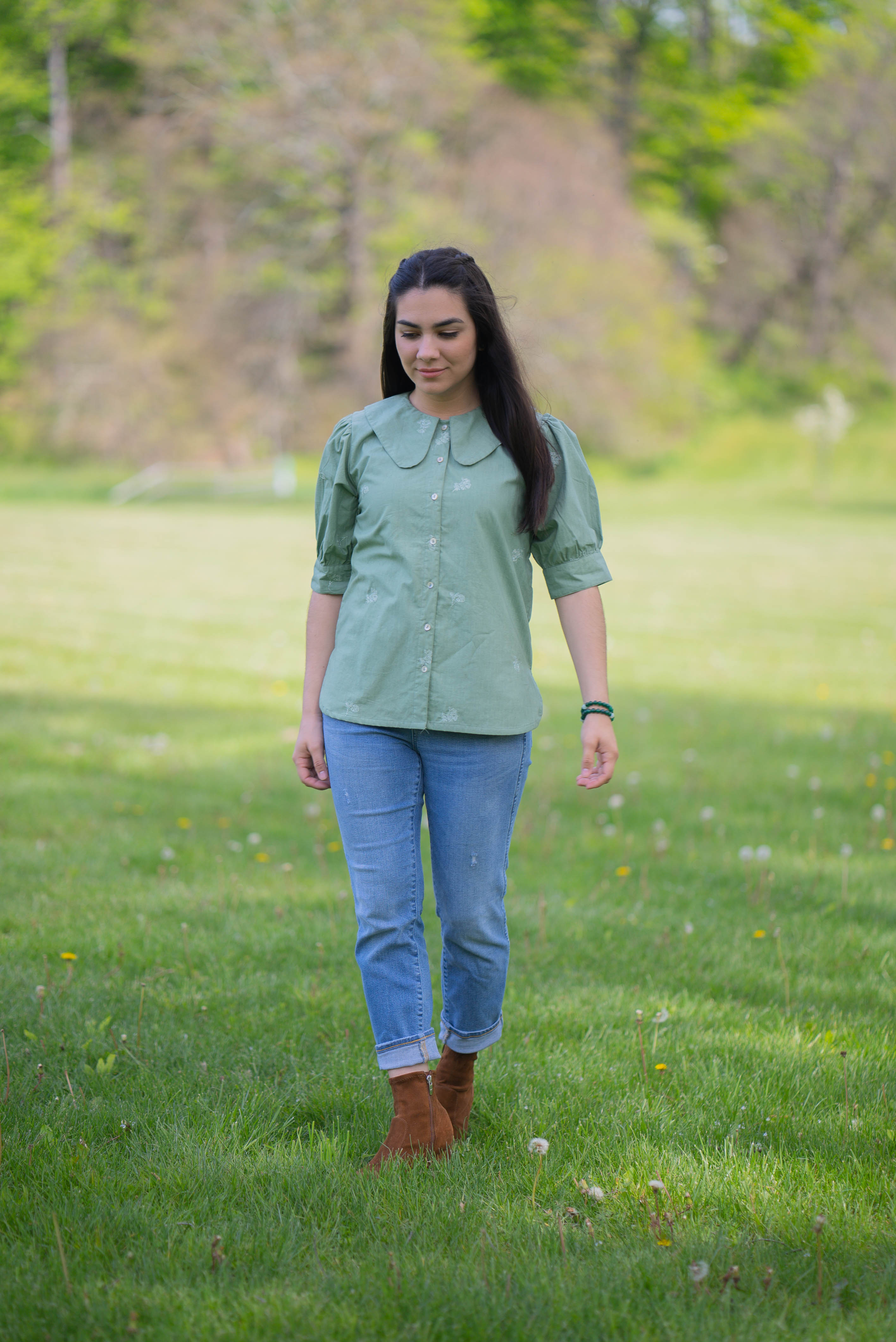 BRENDA BLOUSE WITH COLLAR | SAGE POPPY EMBROIDERY