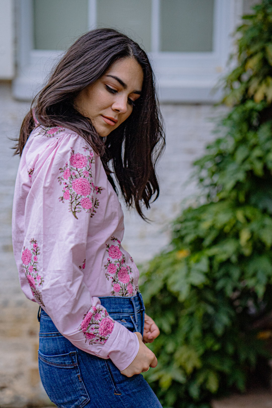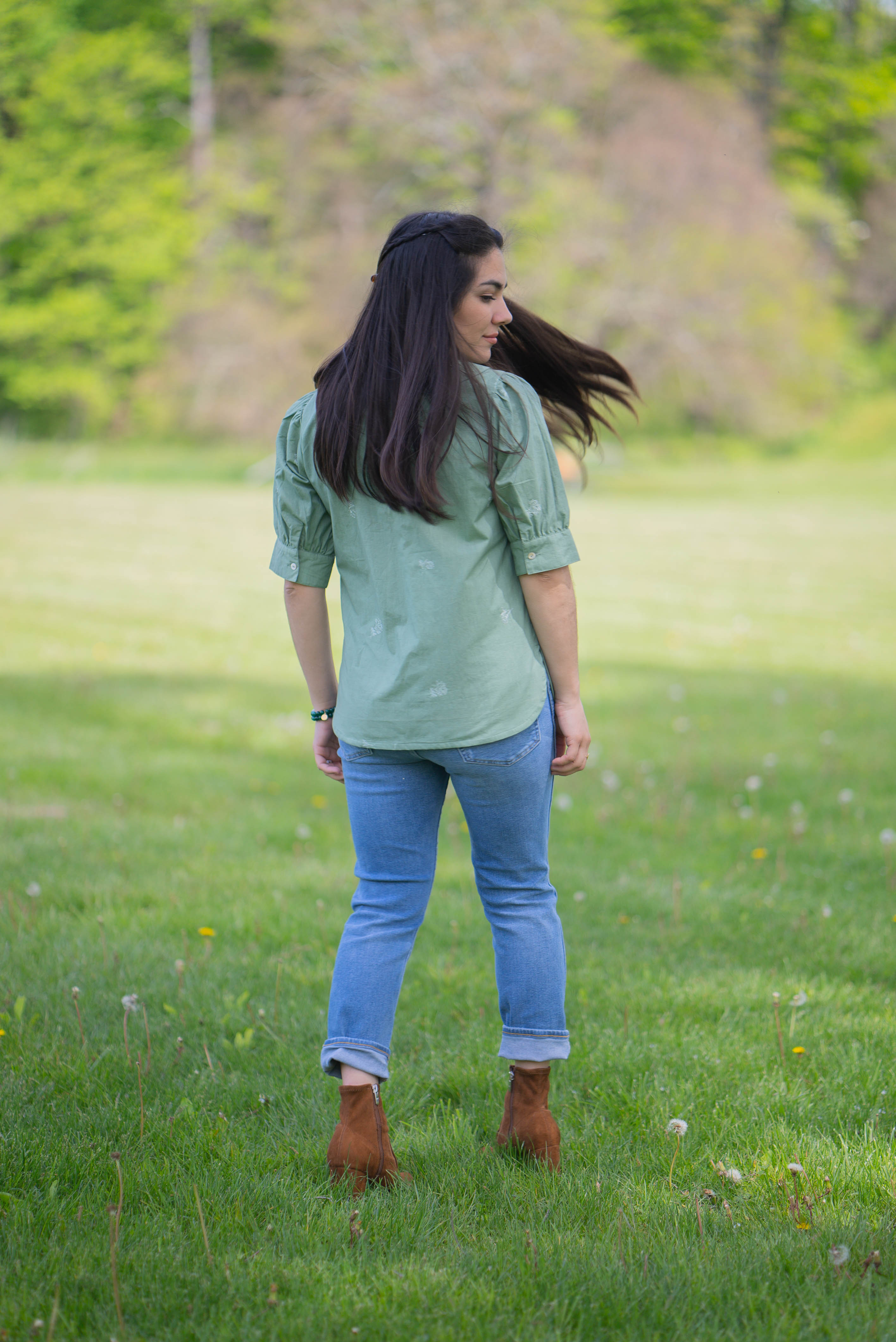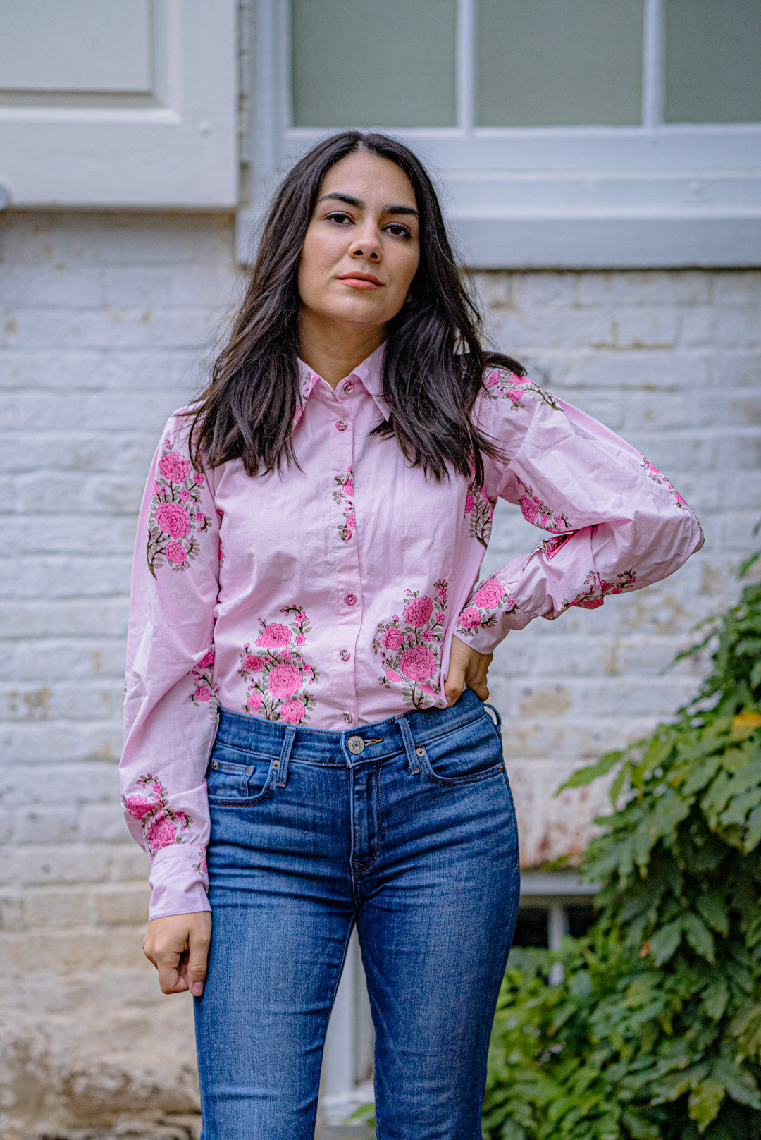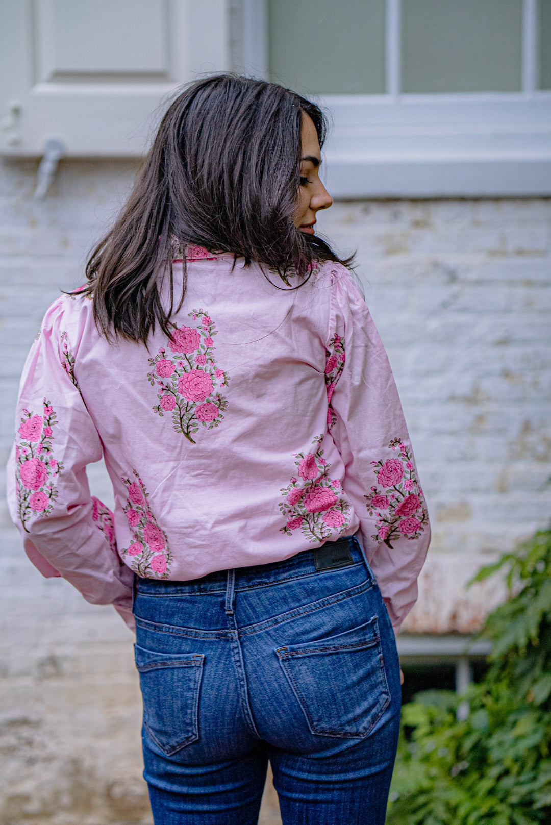 BRENDA BLOUSE WITH COLLAR | SAGE POPPY EMBROIDERY
