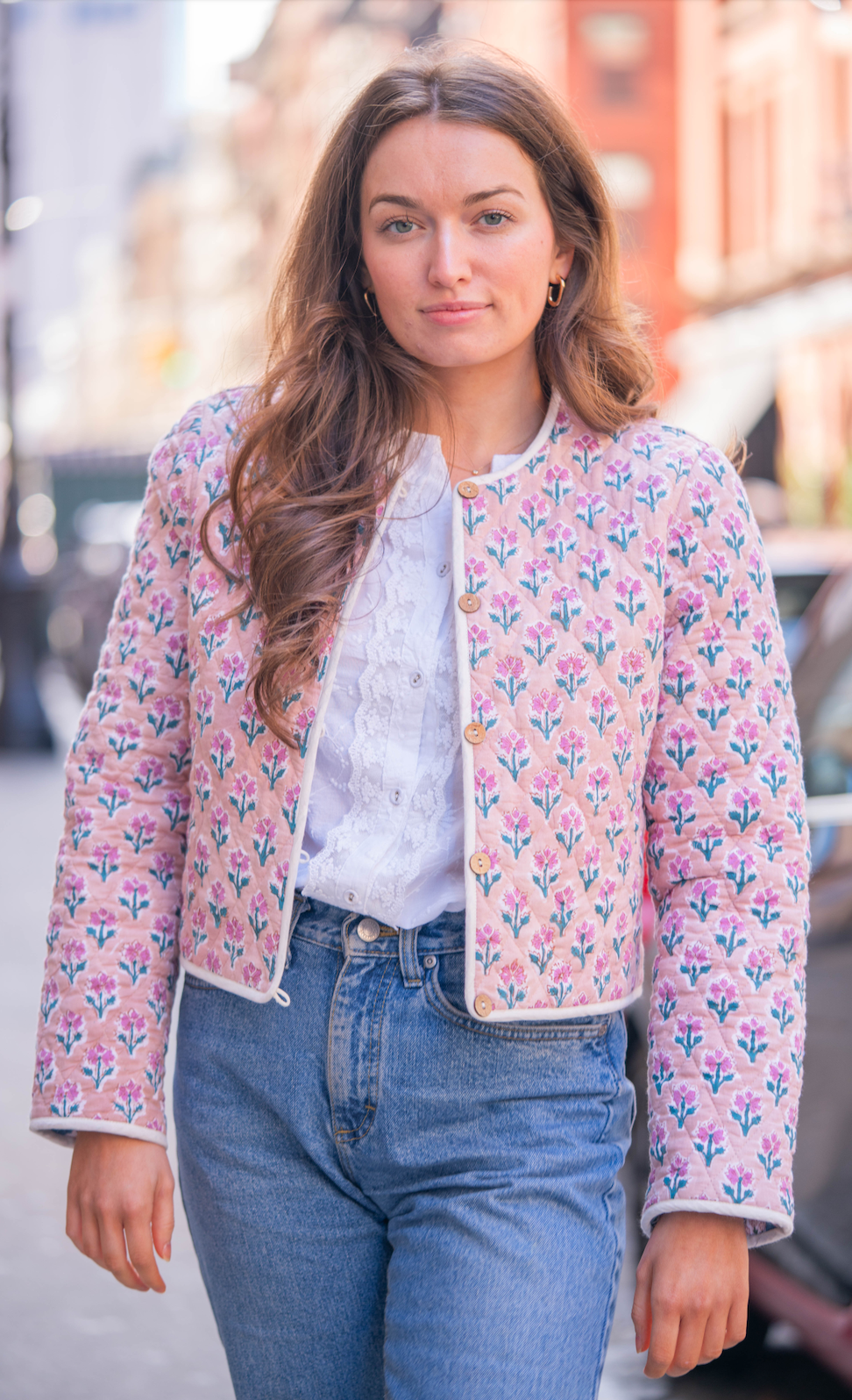 HARPER REVERSIBLE QUILTED JACKET | CHARMING BLUE & ROMANTIC PINK