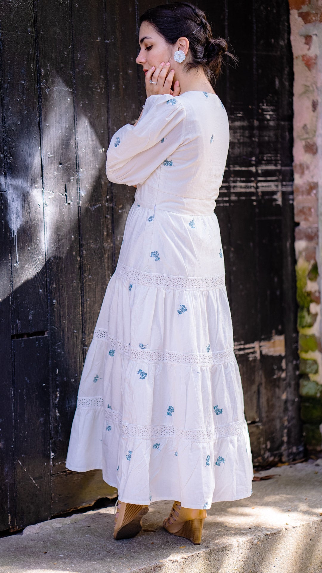TERESA EMBROIDERED BLOUSE WITH RUFFLES | TEAL POPPY