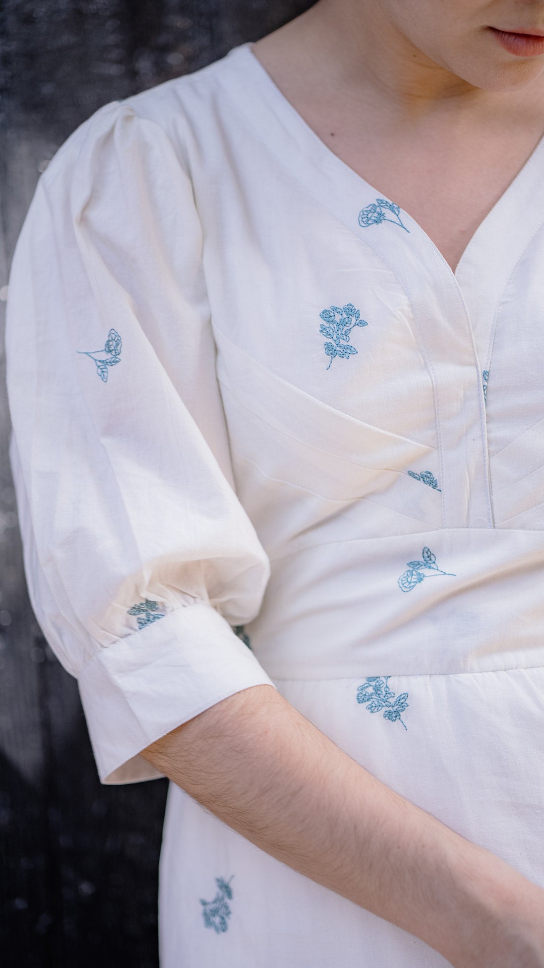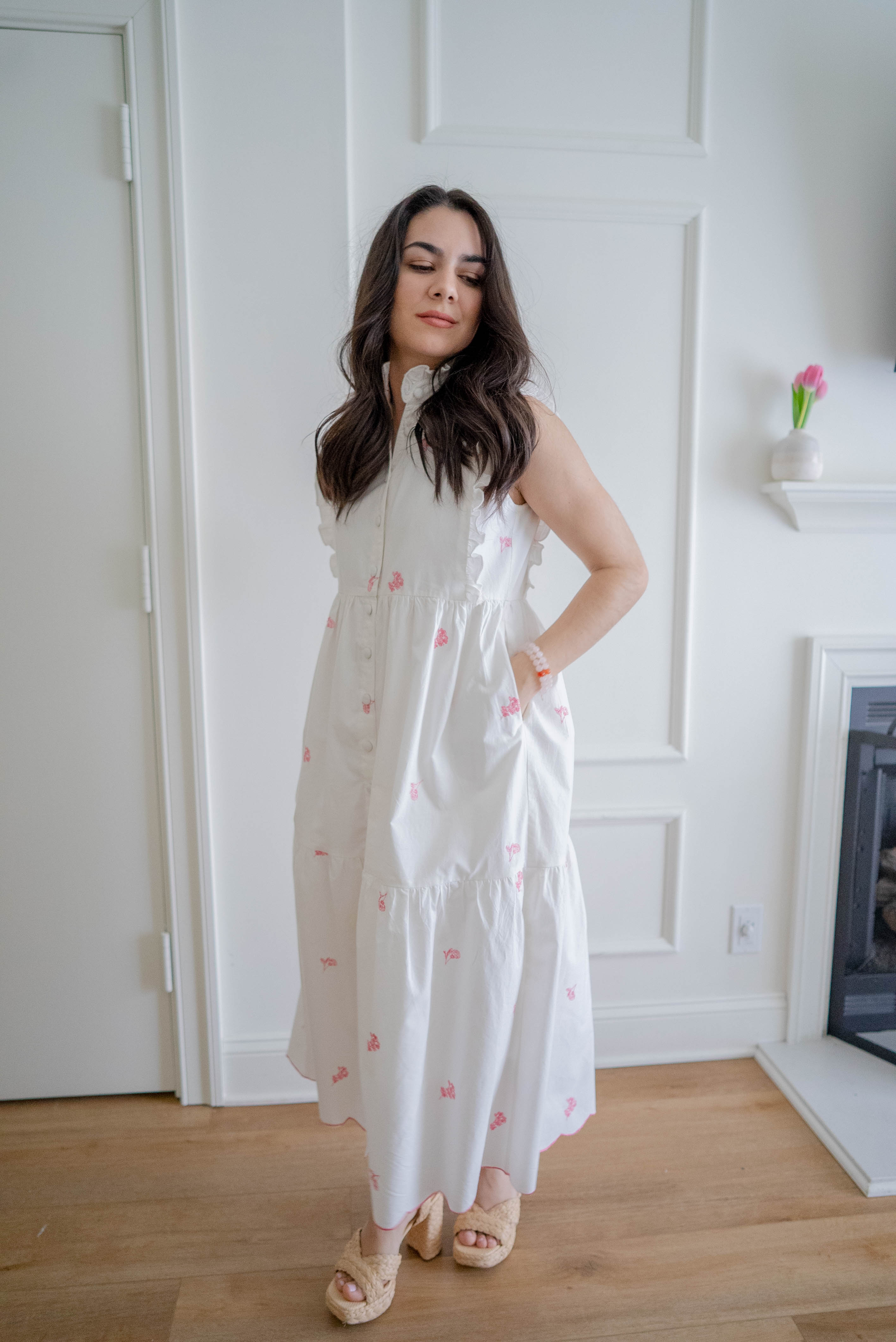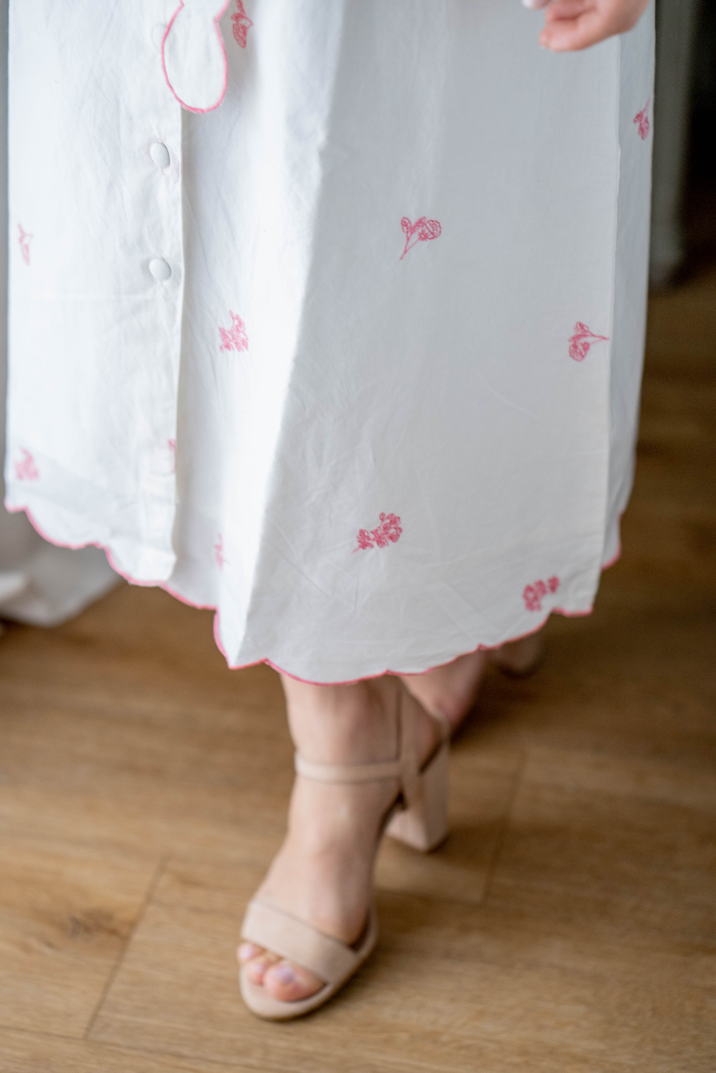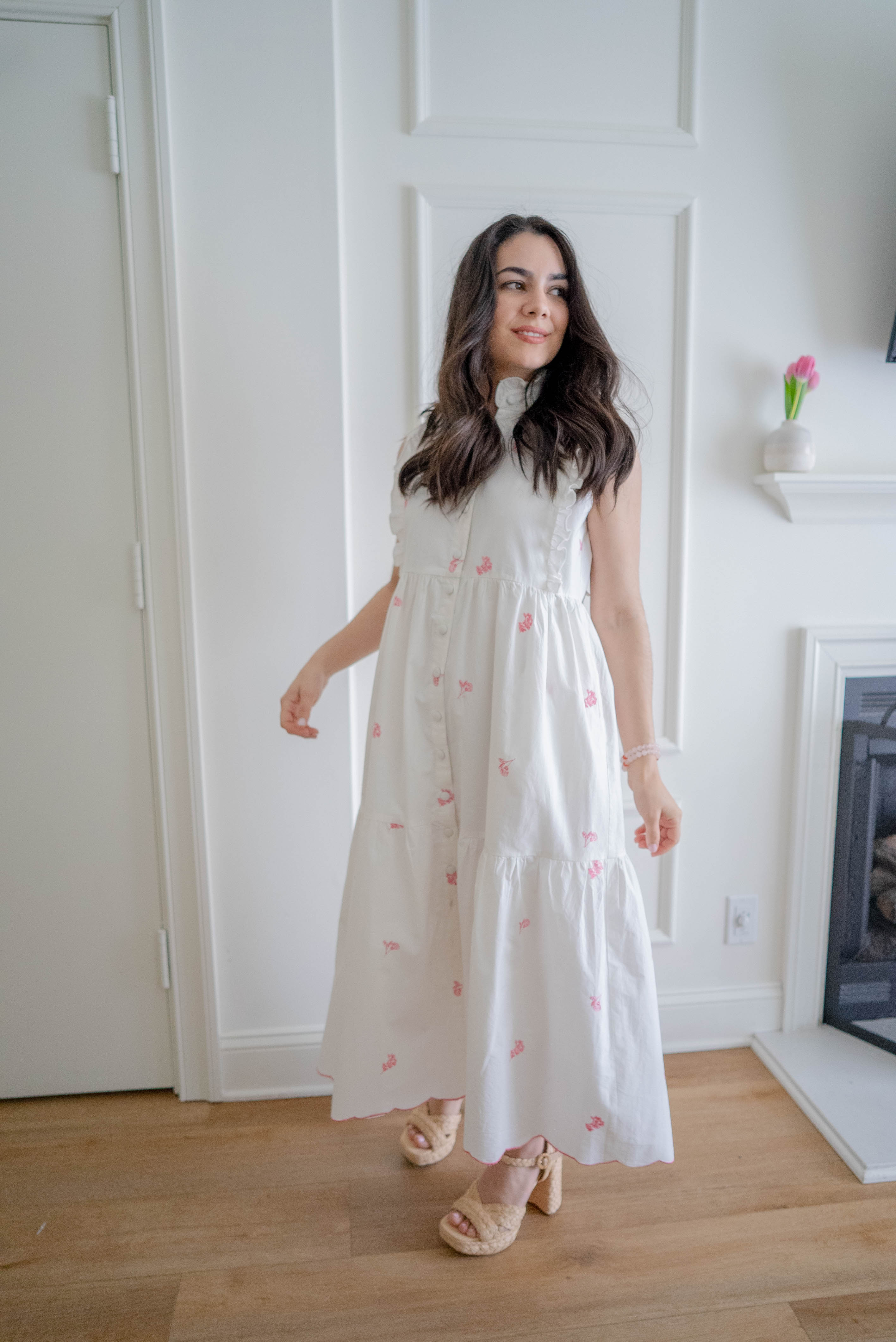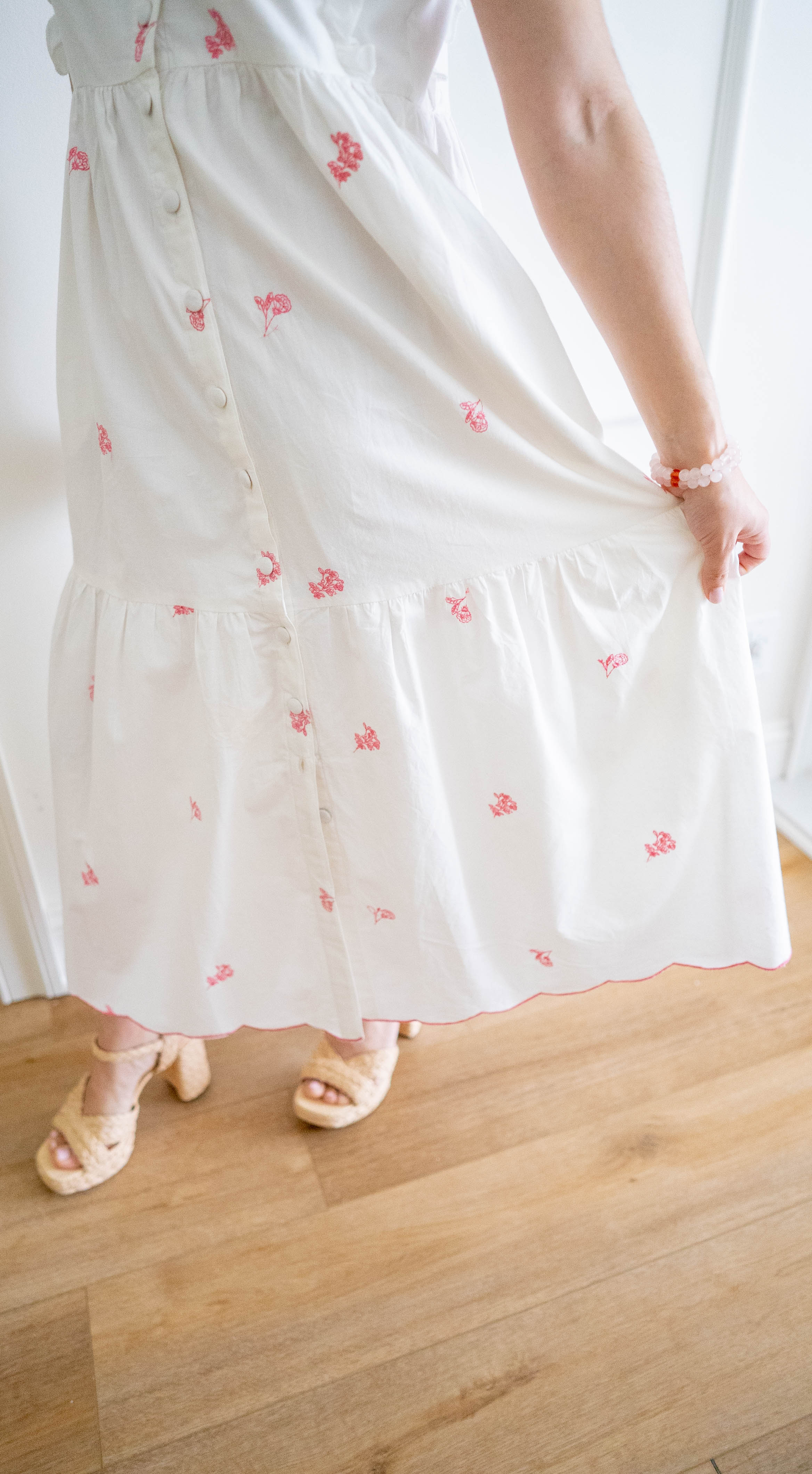 EMILIA V-NECK EMBROIDERED DRESS | POPPY