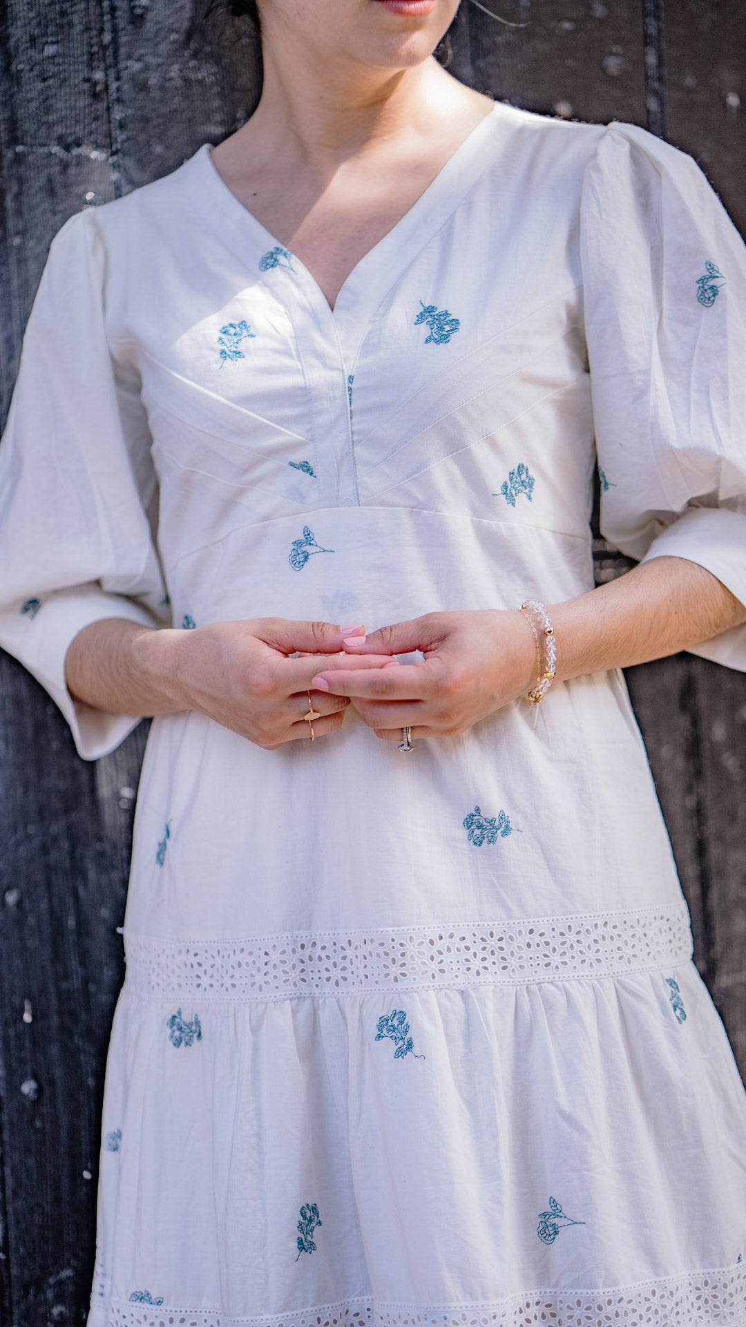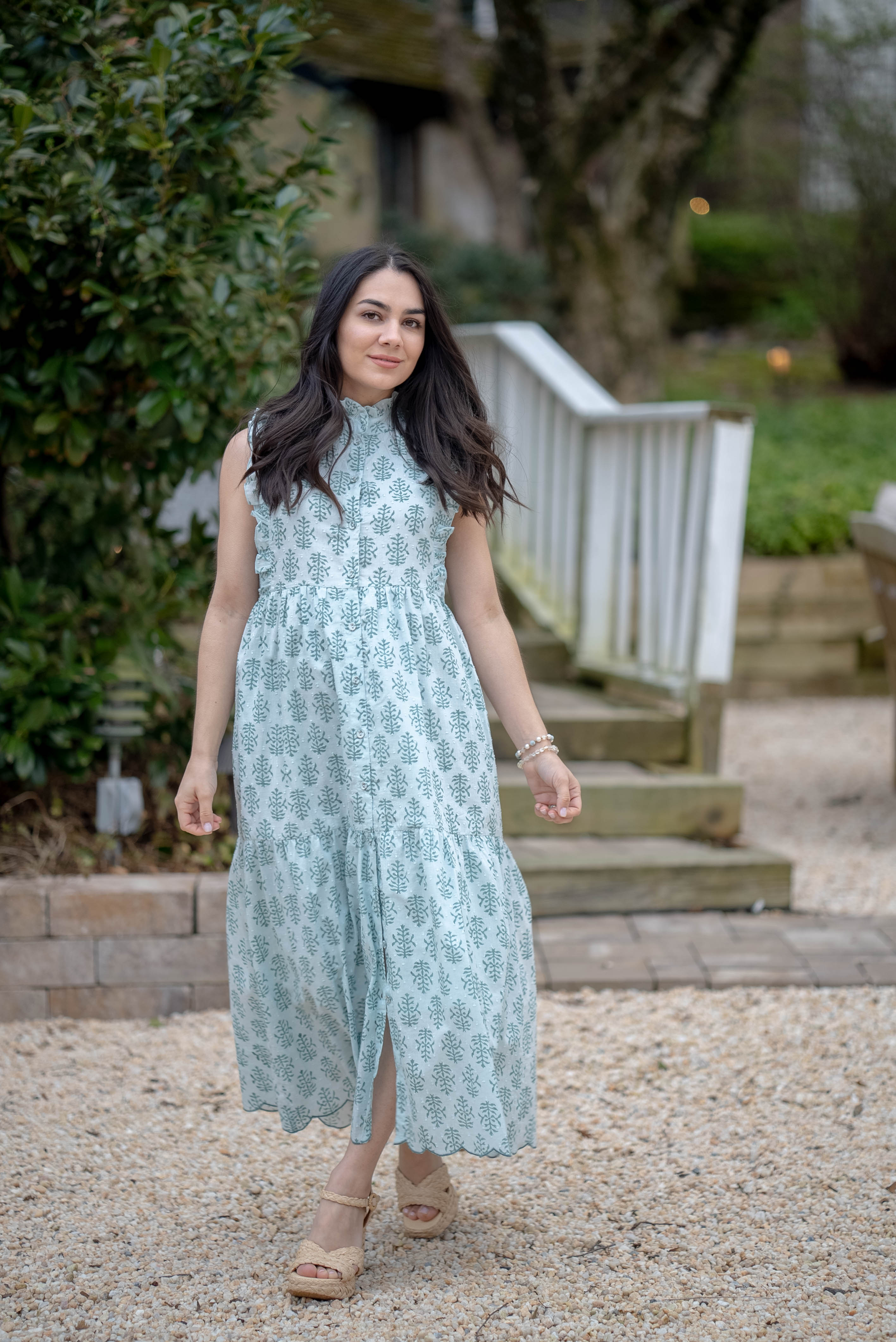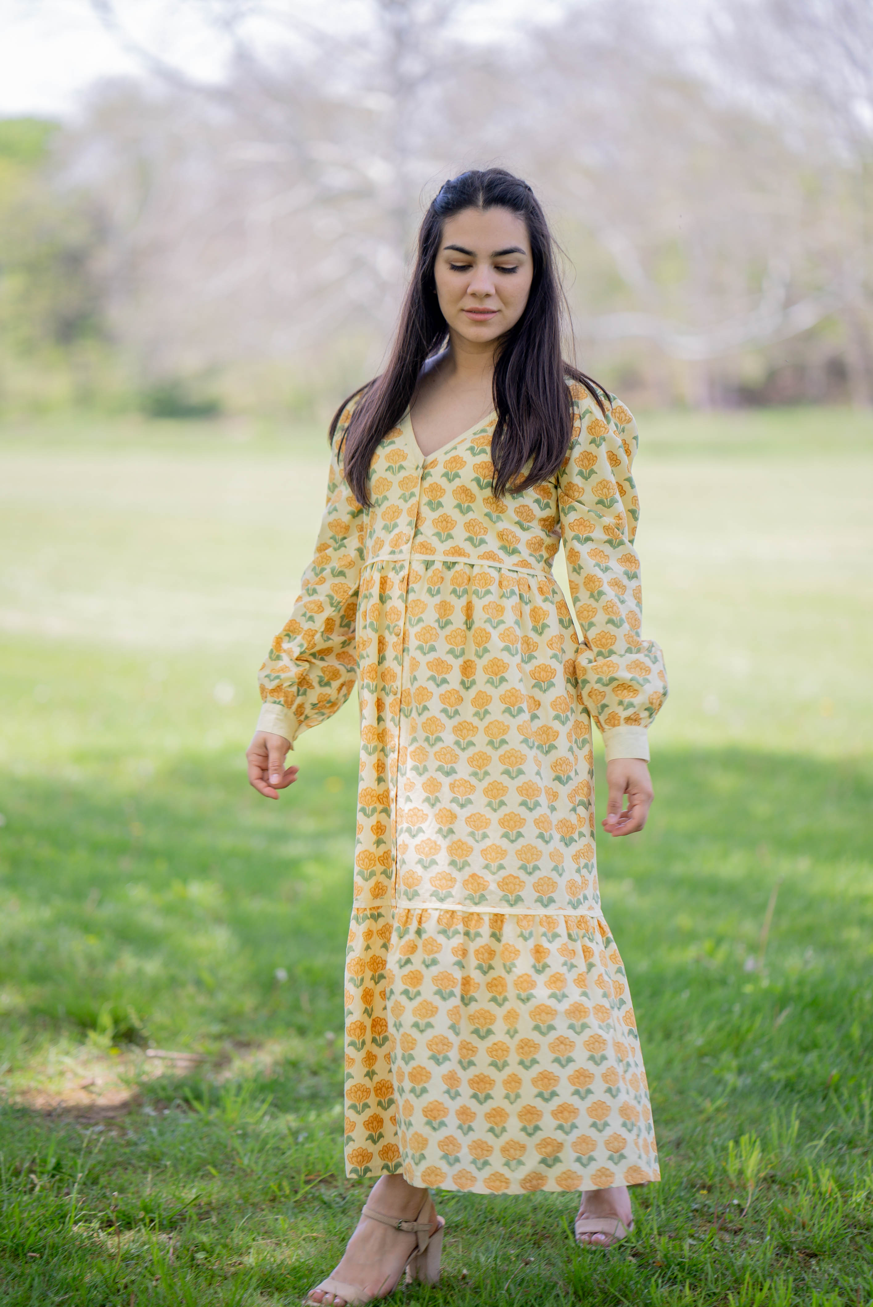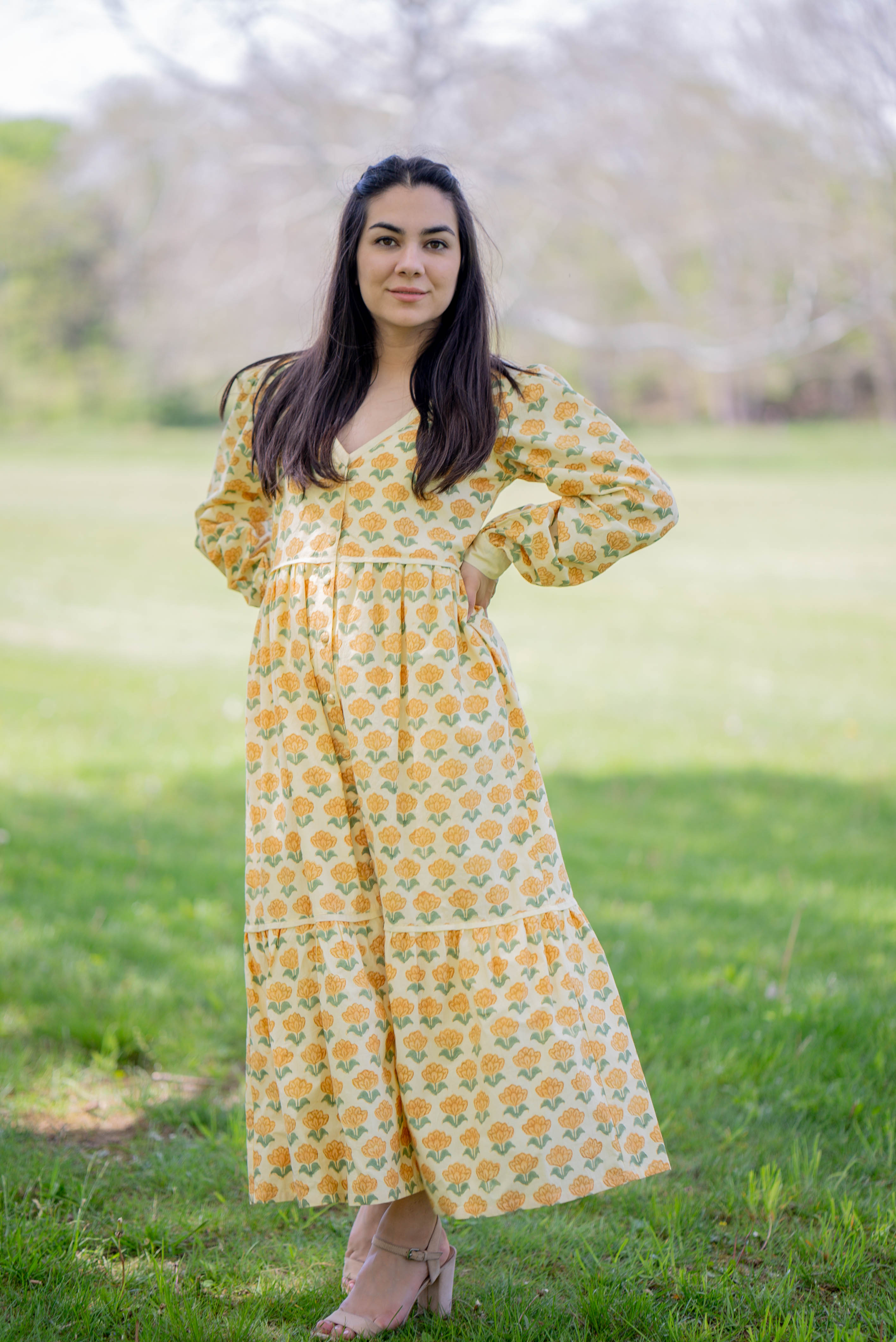 SOFIA BLOCK PRINT DRESS WITH PUFF SLEEVES | TAMARIZ