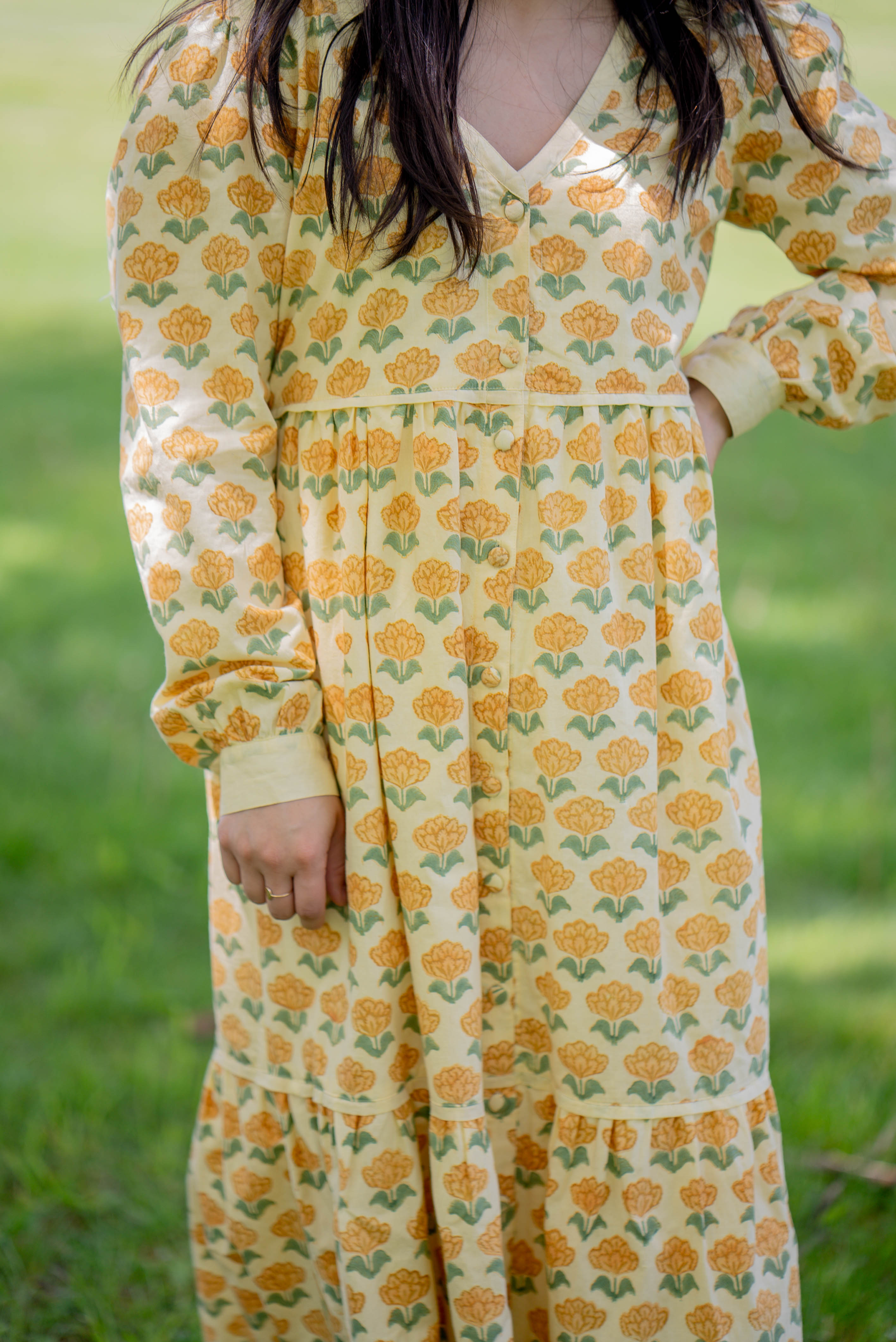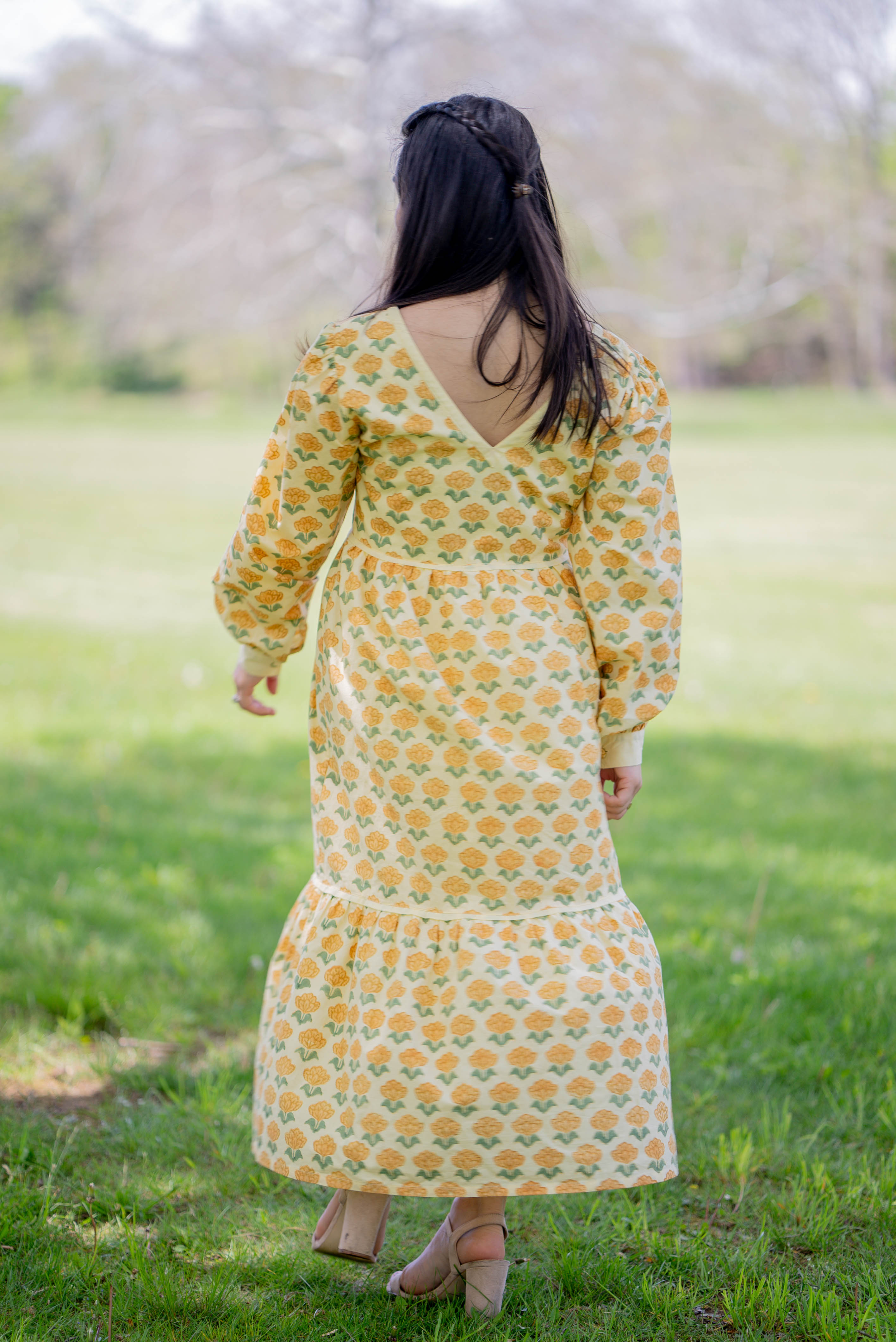 ANGELICA V-NECK MIDI DRESS | YELLOW PETUNIA