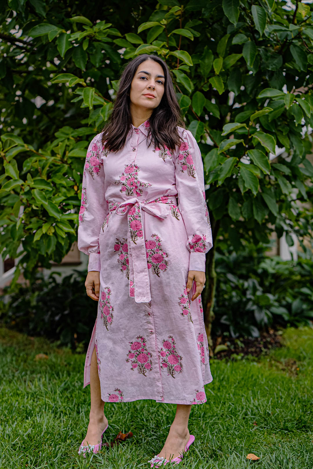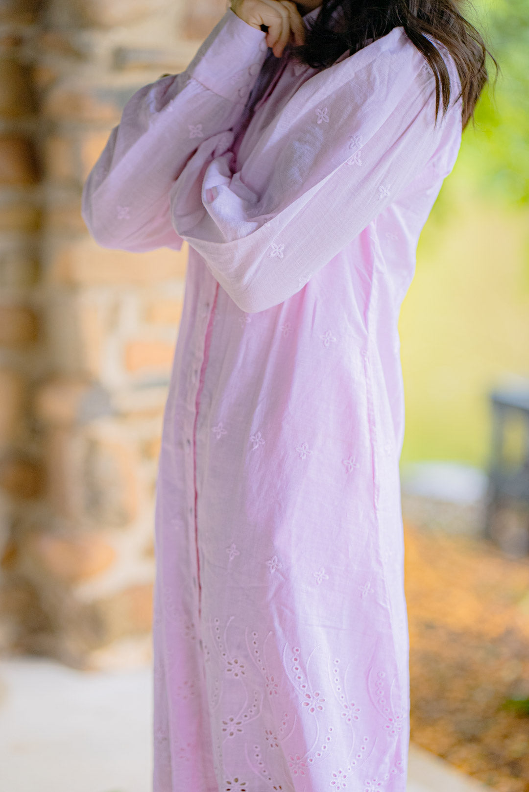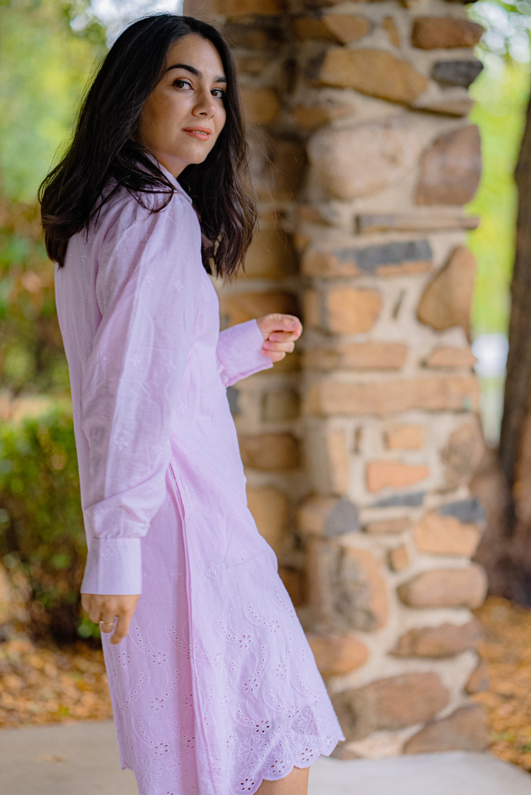 NATALIE KNEE LENGTH SHIRT DRESS | LIGHT PINK EYELET