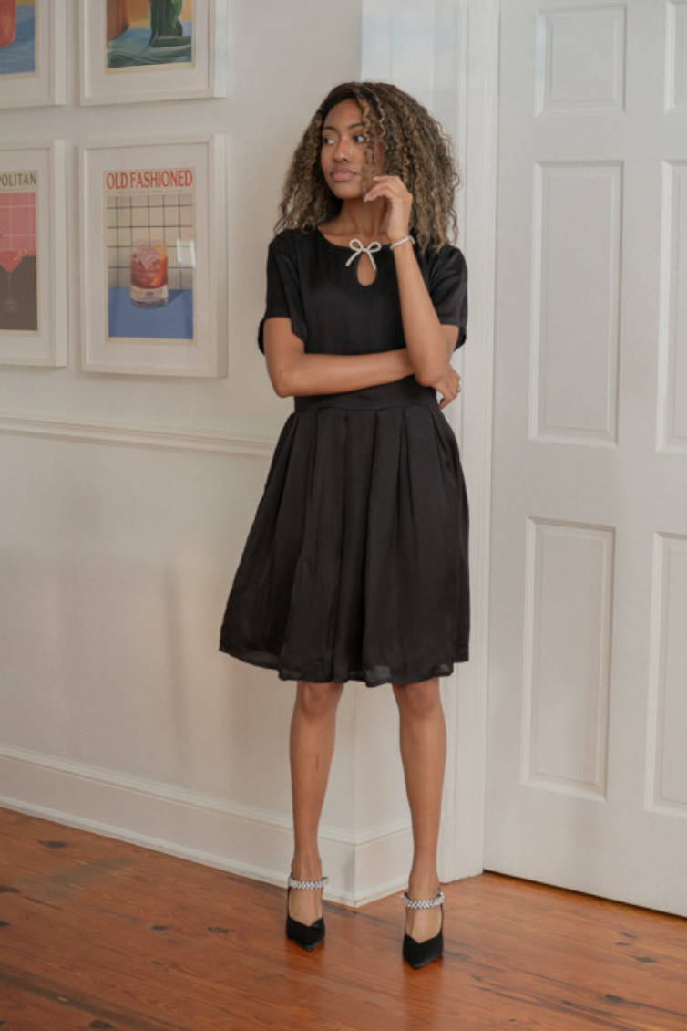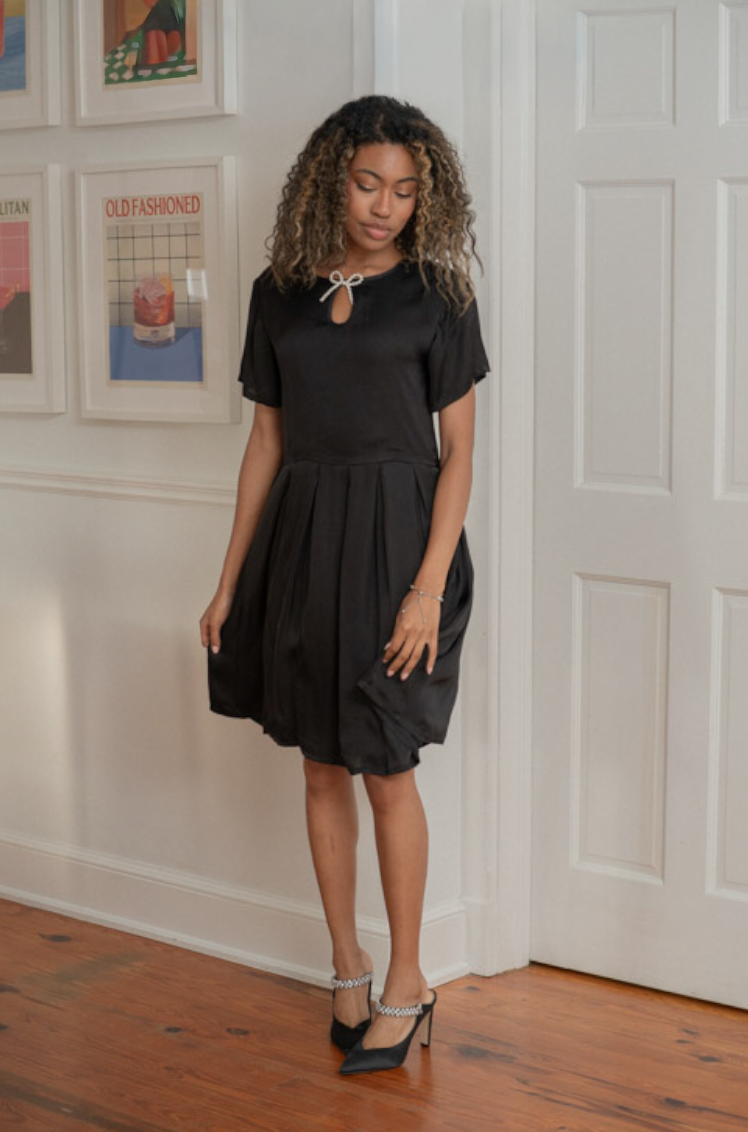 PRE-ORDER: SAVANNAH PLEATED KNEE LENGTH DRESS | NOIR PEARL