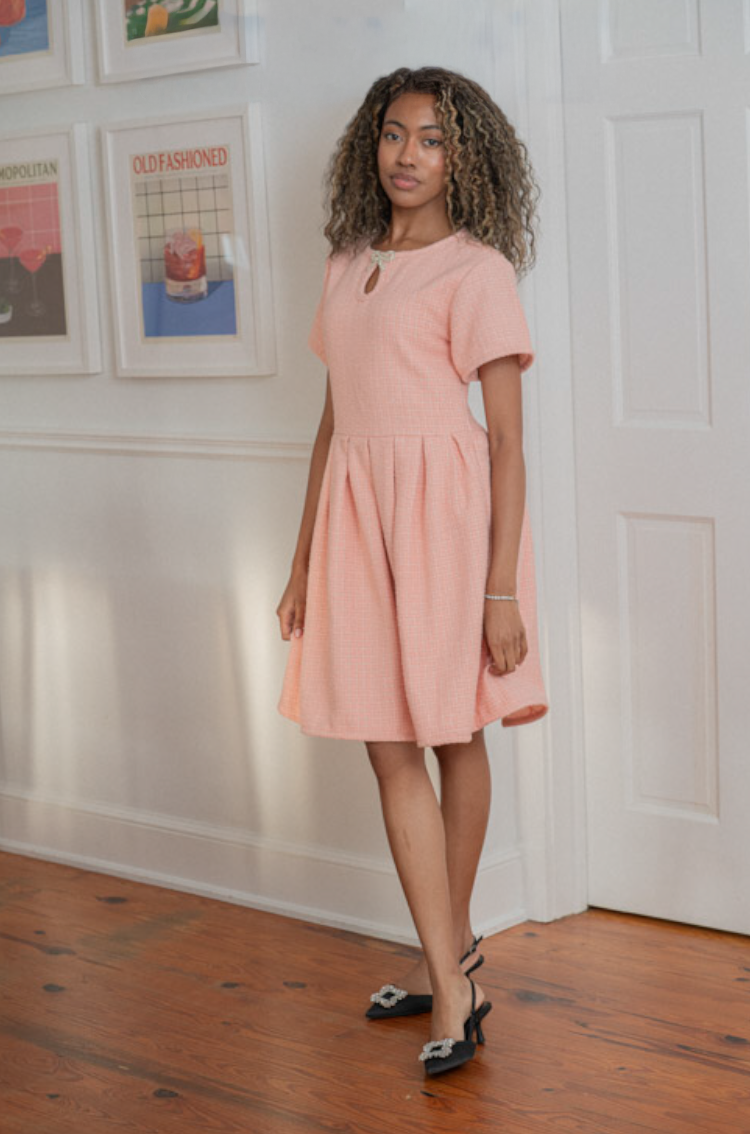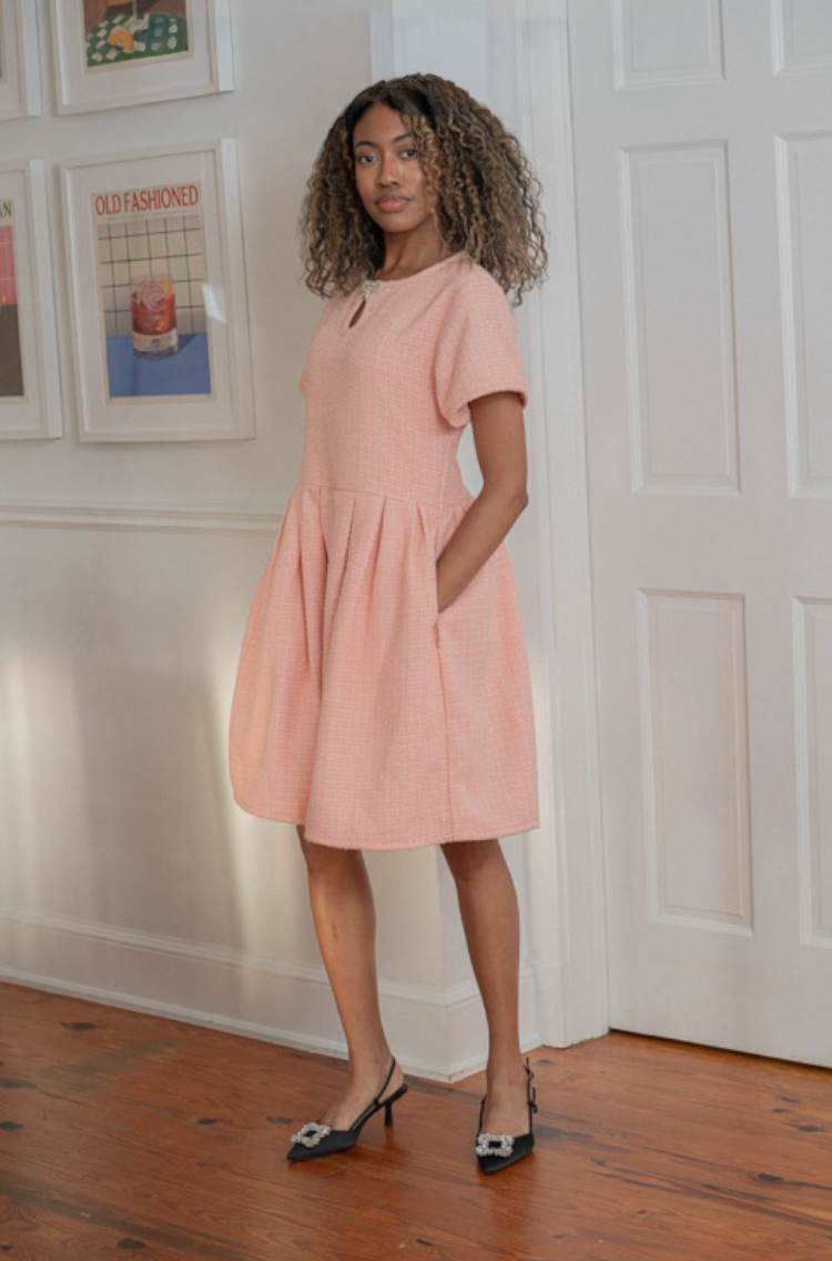 PRE-ORDER: SAVANNAH PLEATED KNEE LENGTH DRESS | PINK MEMOIR