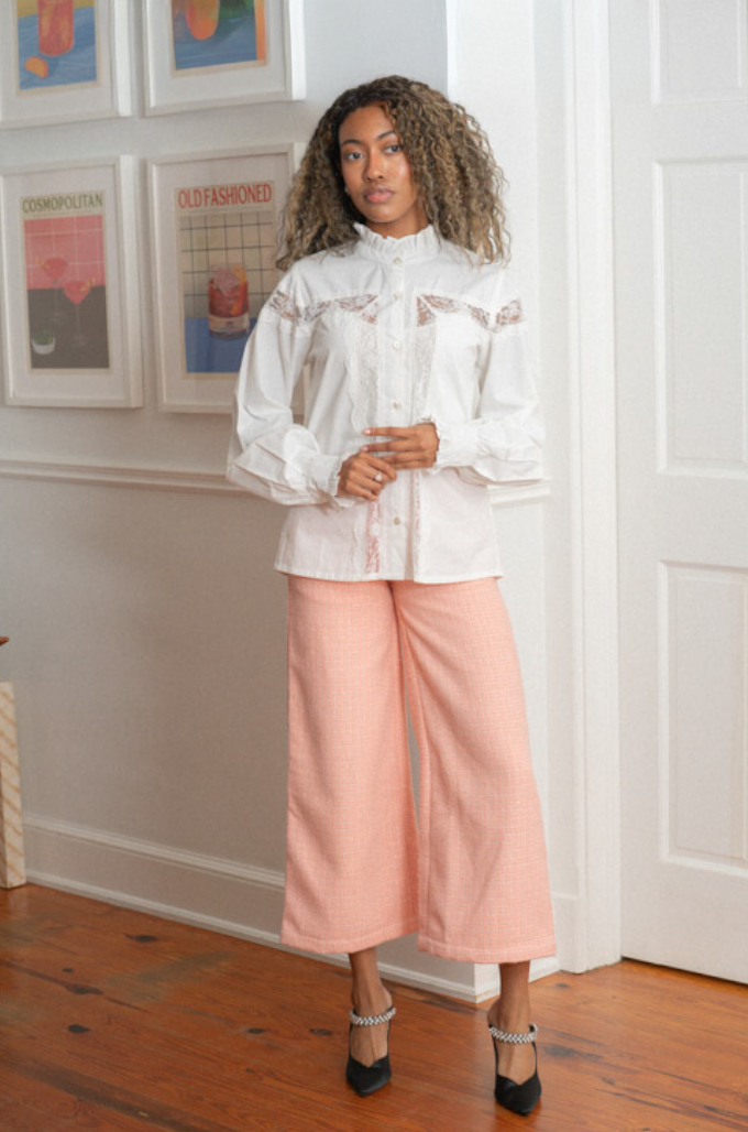 PRE-ORDER: TERESA BLOUSE WITH RUFFLES | ROSE PETAL LACE
