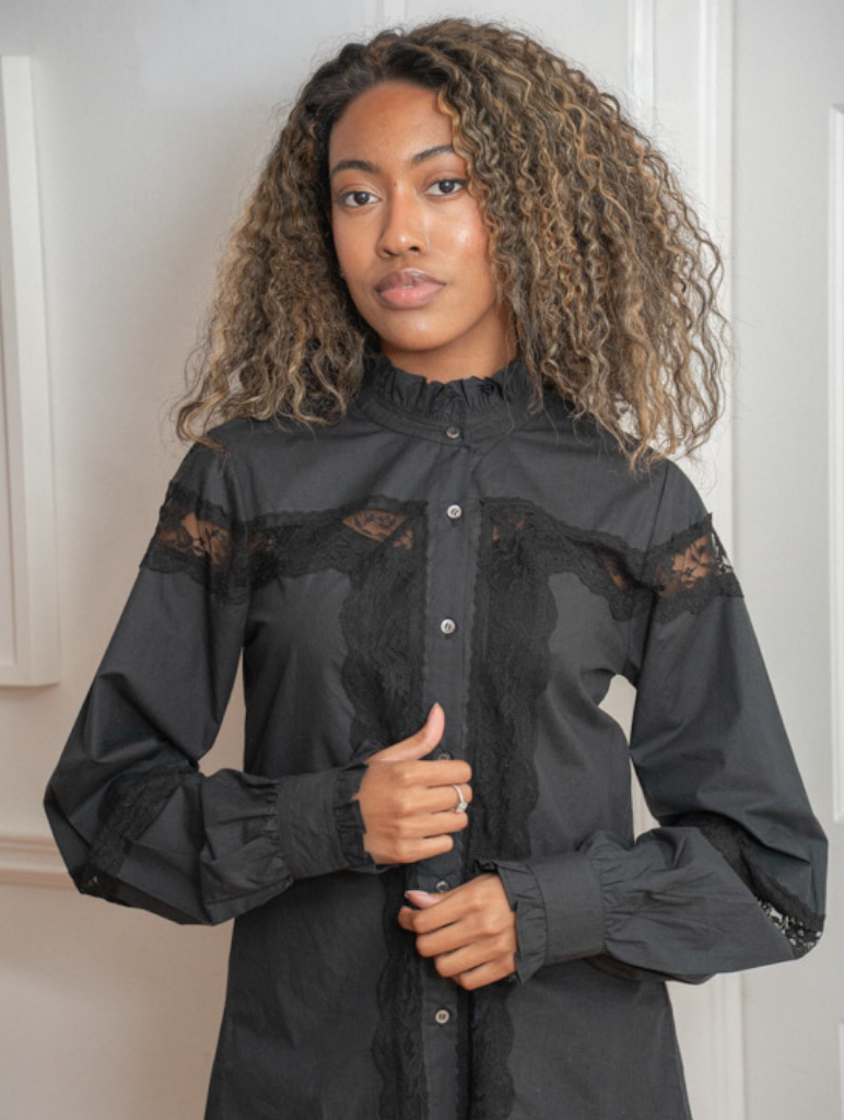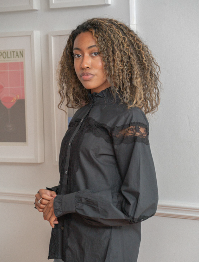 PRE-ORDER: TERESA BLOUSE WITH RUFFLES | NOIR LACE