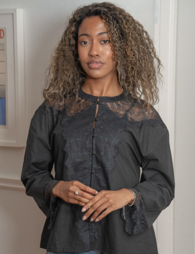 PRE-ORDER: CHARLOTTE BUTTON UP LACE BLOUSE | NOIR
