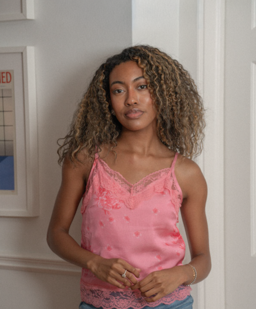 PRE-ORDER: SELMA SATIN AND LACE CAMI TOP | PINK BLUSHING GARDEN