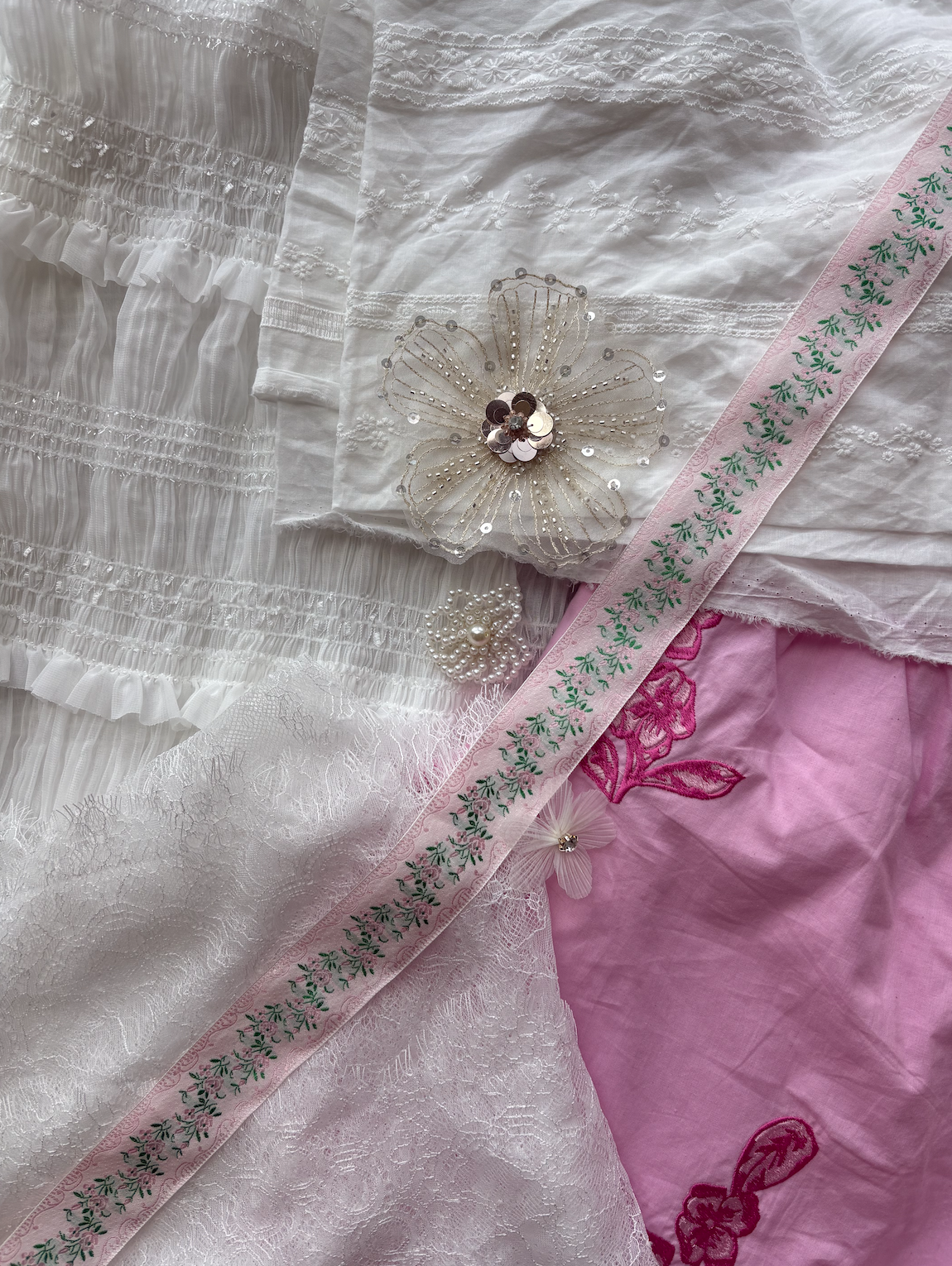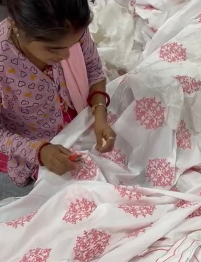 We collaborate closely with our artisans to bring each initial design to life. The first set of garments for the collection, our samples, are entirely handmade, using the same thoughtful craftsmanship and high-quality materials as our final production. This is also the stage where final details come into play, whether it’s adding lace, embellishments, or refining trim and finishing touches. It’s where the design evolves from concept to something beautifully tangible.