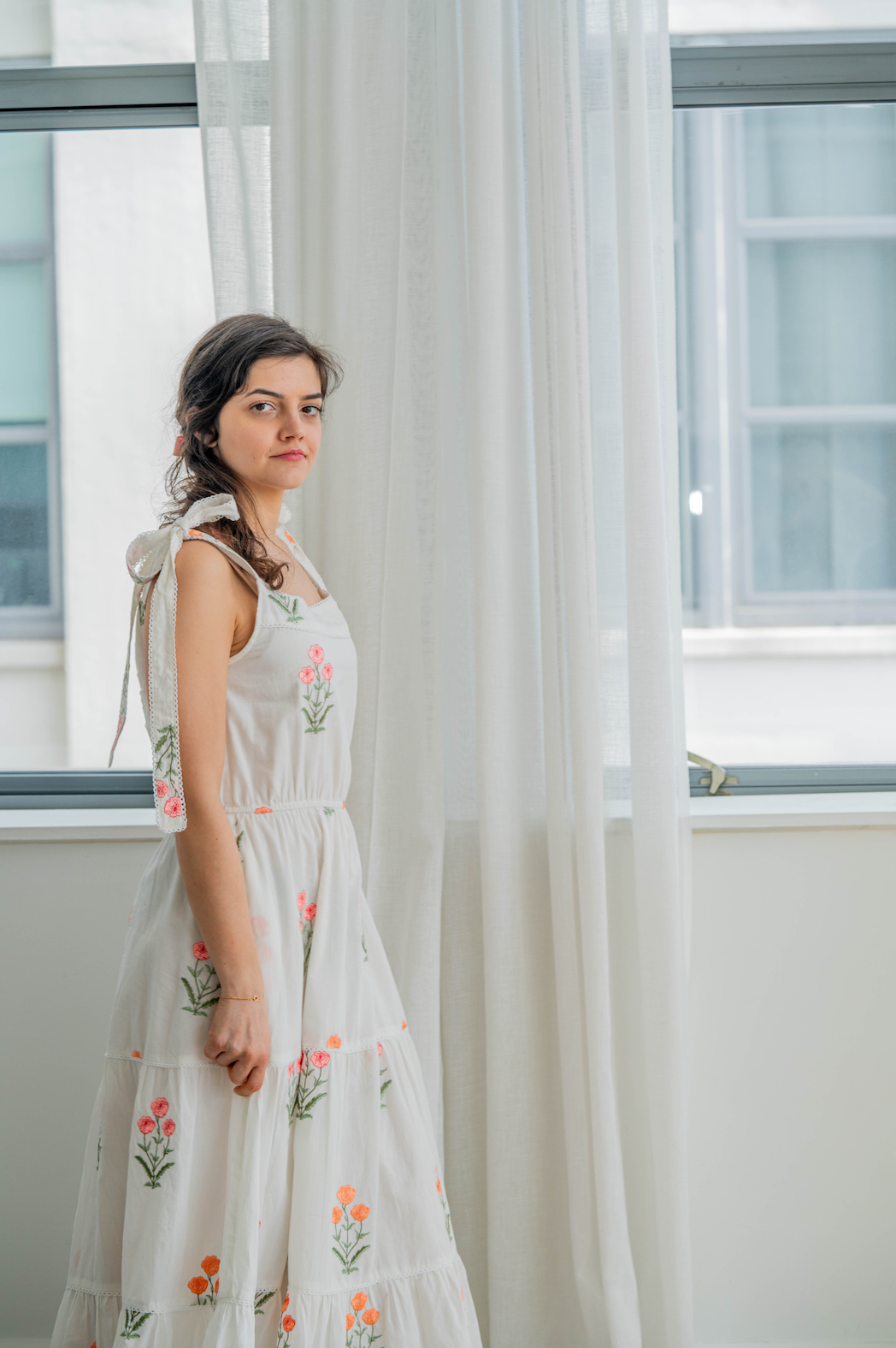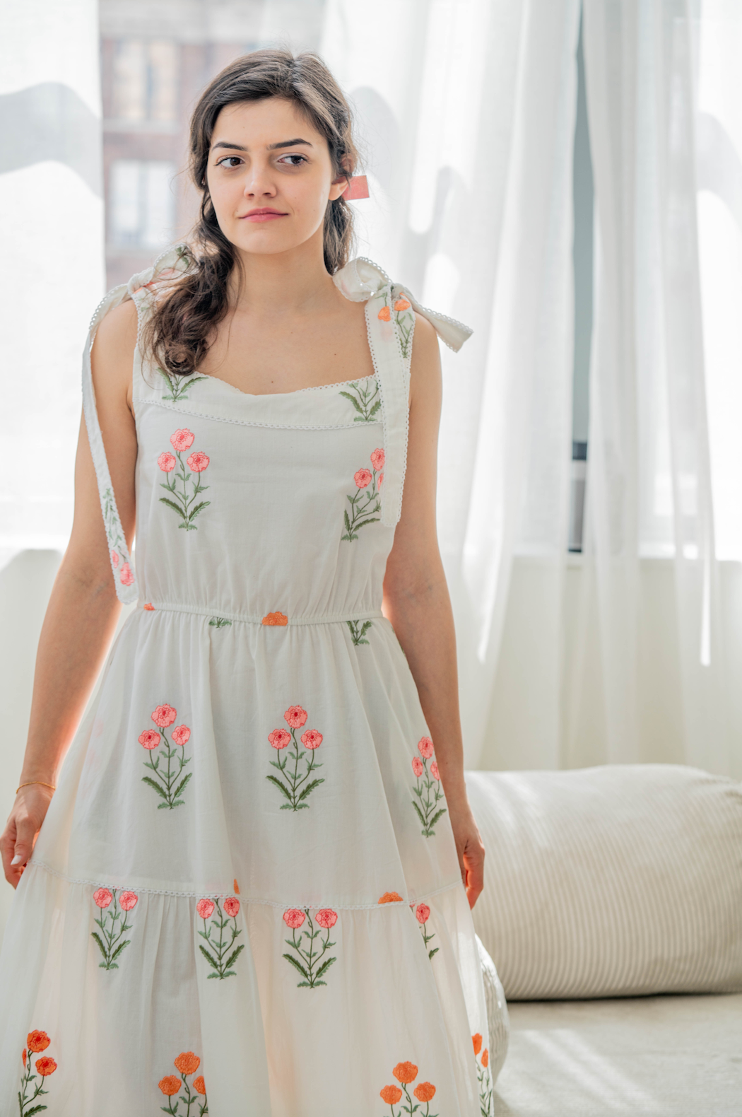 CATALINA TIE STRAP MAXI DRESS | FLORAL BLOOM EMBROIDERY