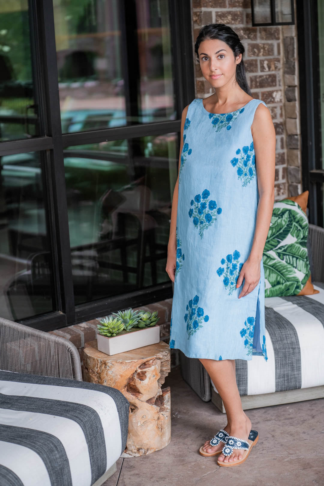 FREDERICA LINEN SLIP-ON DRESS WITH CROCHET STRAPS | BLUE LAGOS