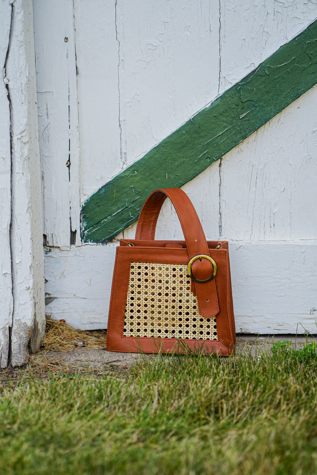 HELENA RATTAN WITH LEATHER TRIM HANDBAG | BROWN