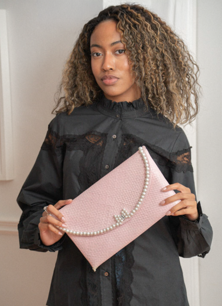 PRE-ORDER: KIA PAVE BOW EMBELLISHED CLUTCH | PINK