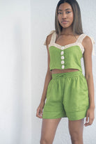 PRE-ORDER: BETHANY LINEN DRAW STRING SHORTS | VERDE LIMON