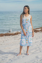 Functional front buttons run down the dress, allowing for versatile styling and an adjustable neckline, while the relaxed, straight fit creates an easy drape that feels polished yet comfortable. Lightweight and breathable, the Sabrina Dress is made for everything from sun soaked getaways to everyday moments styled with intention.